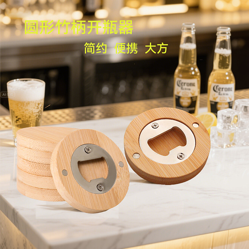 简约实木开瓶器圆形家用磁性冰箱贴木质开瓶器饭店餐桌木制酒起子