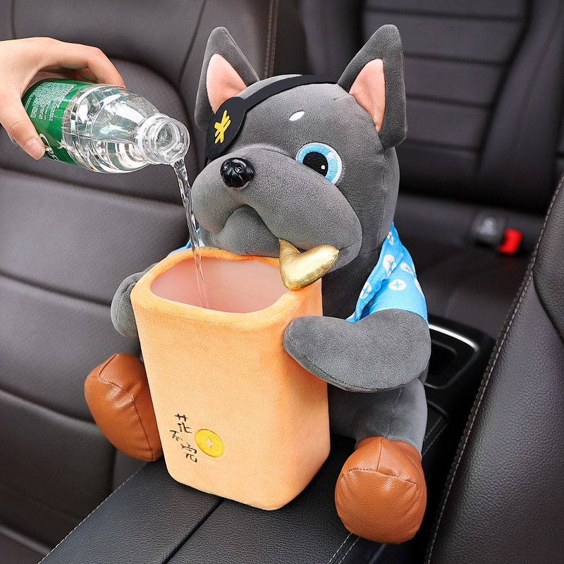 车载纸巾盒垃圾桶二合一创意可爱招财狗汽车扶手箱抽纸盒网红装饰
