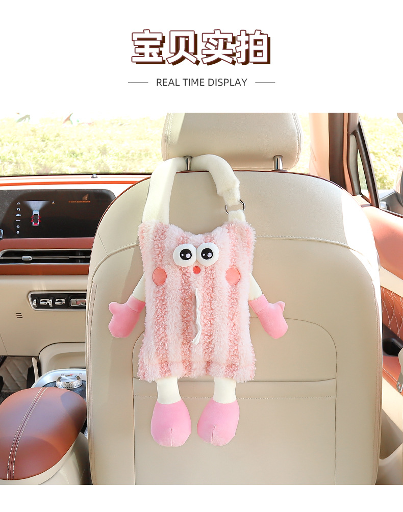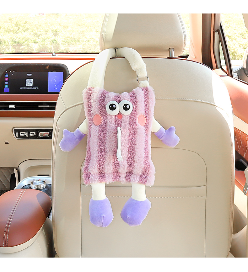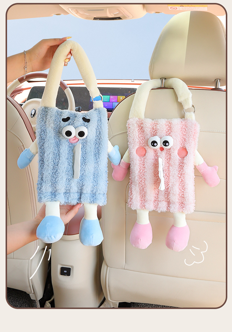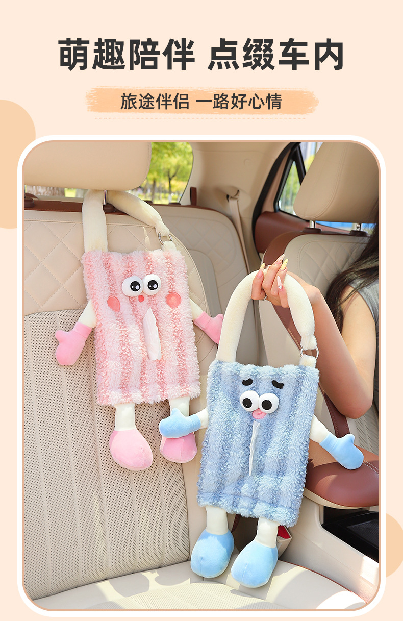 创意车载纸巾盒挂式可爱玩偶汽车抽纸盒高级感纸巾挂袋车内装饰品