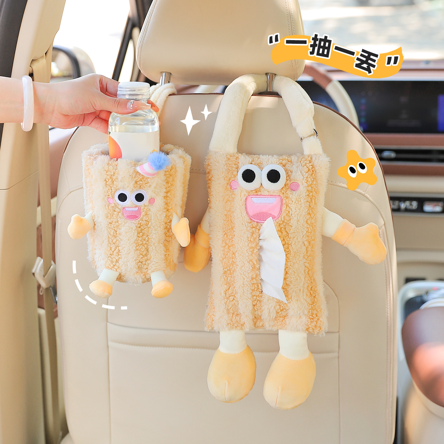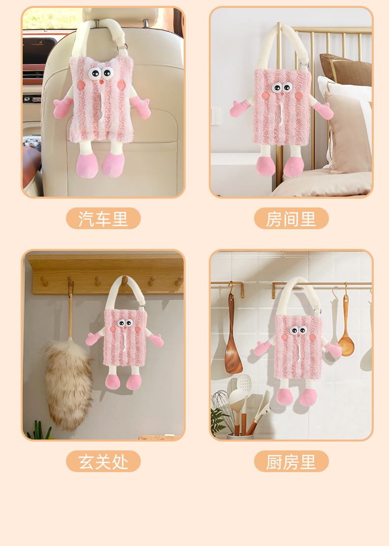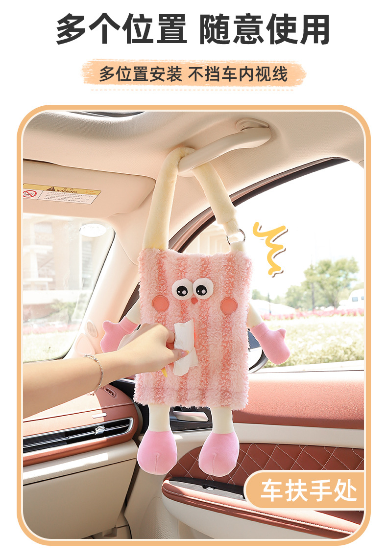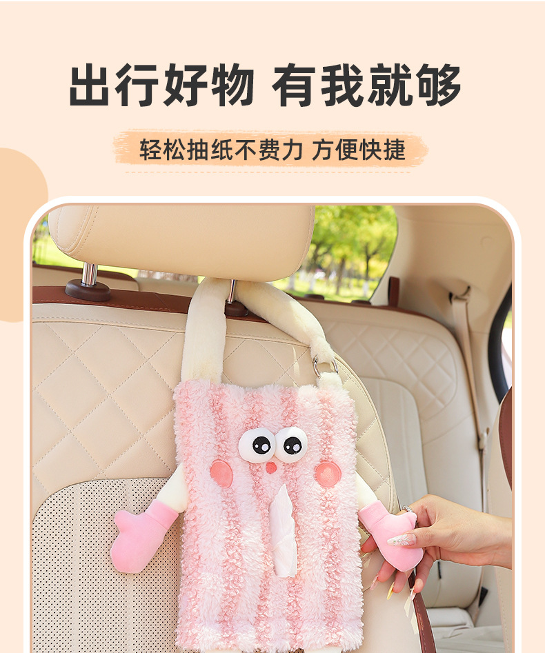 创意车载纸巾盒挂式可爱玩偶汽车抽纸盒高级感纸巾挂袋车内装饰品