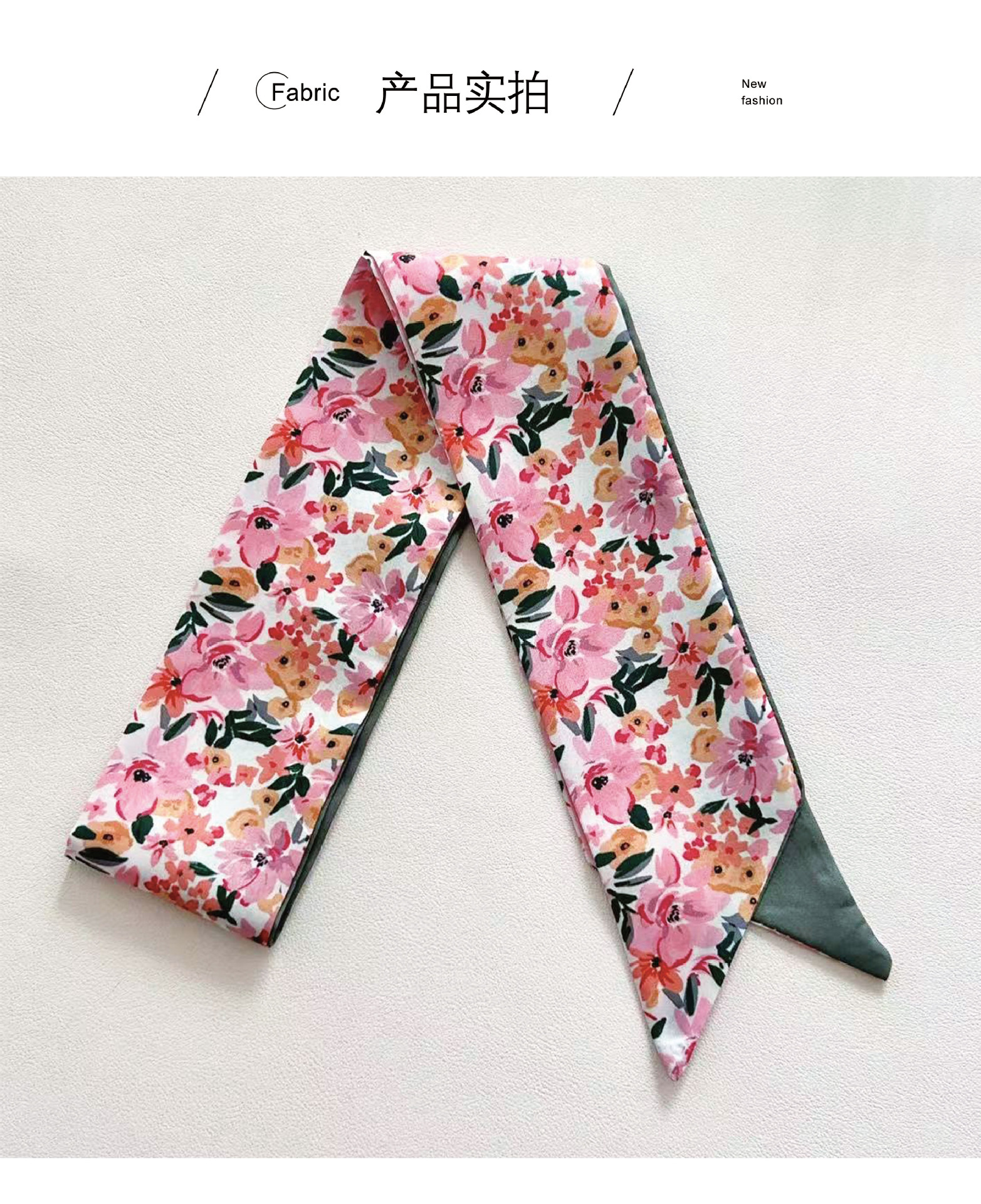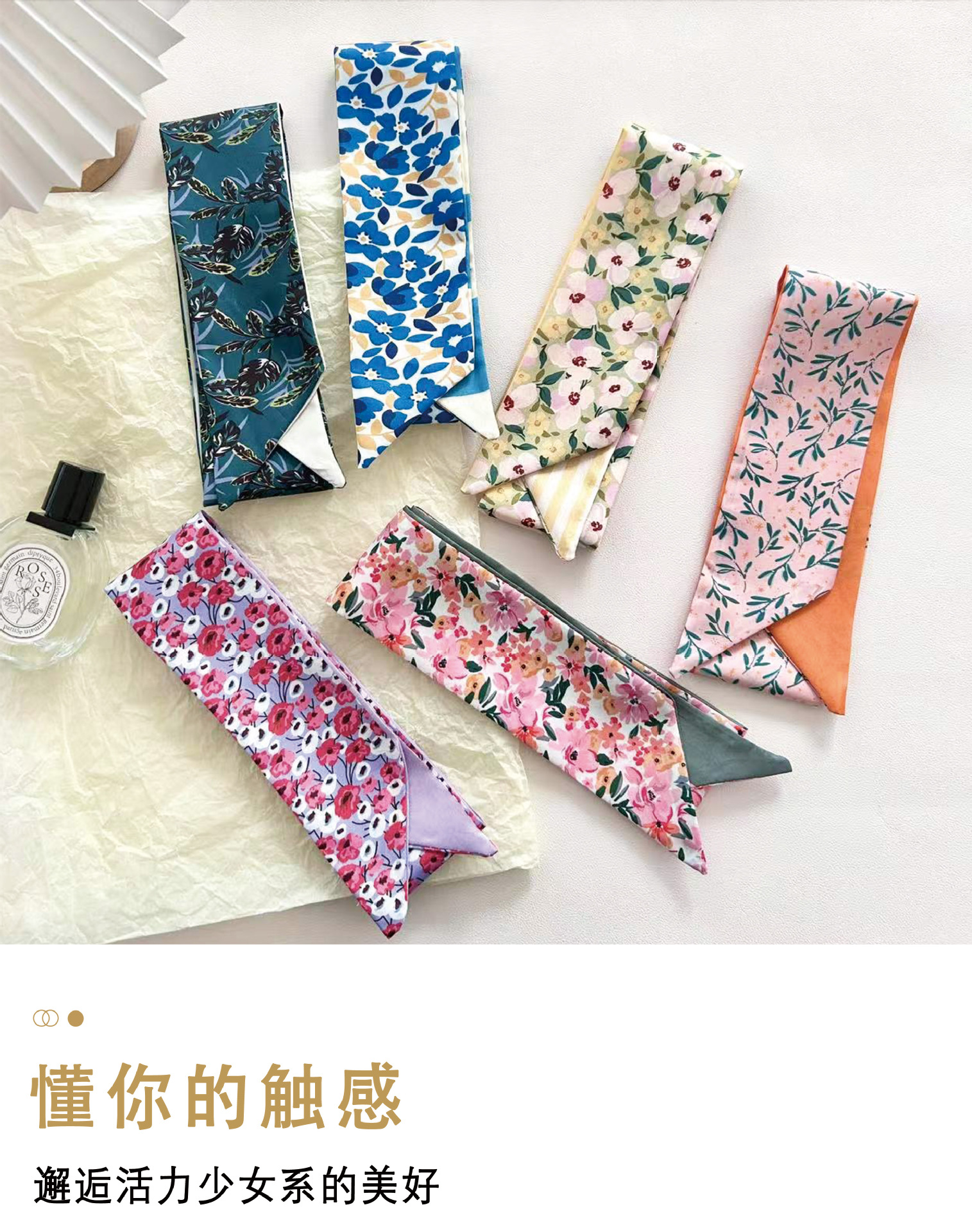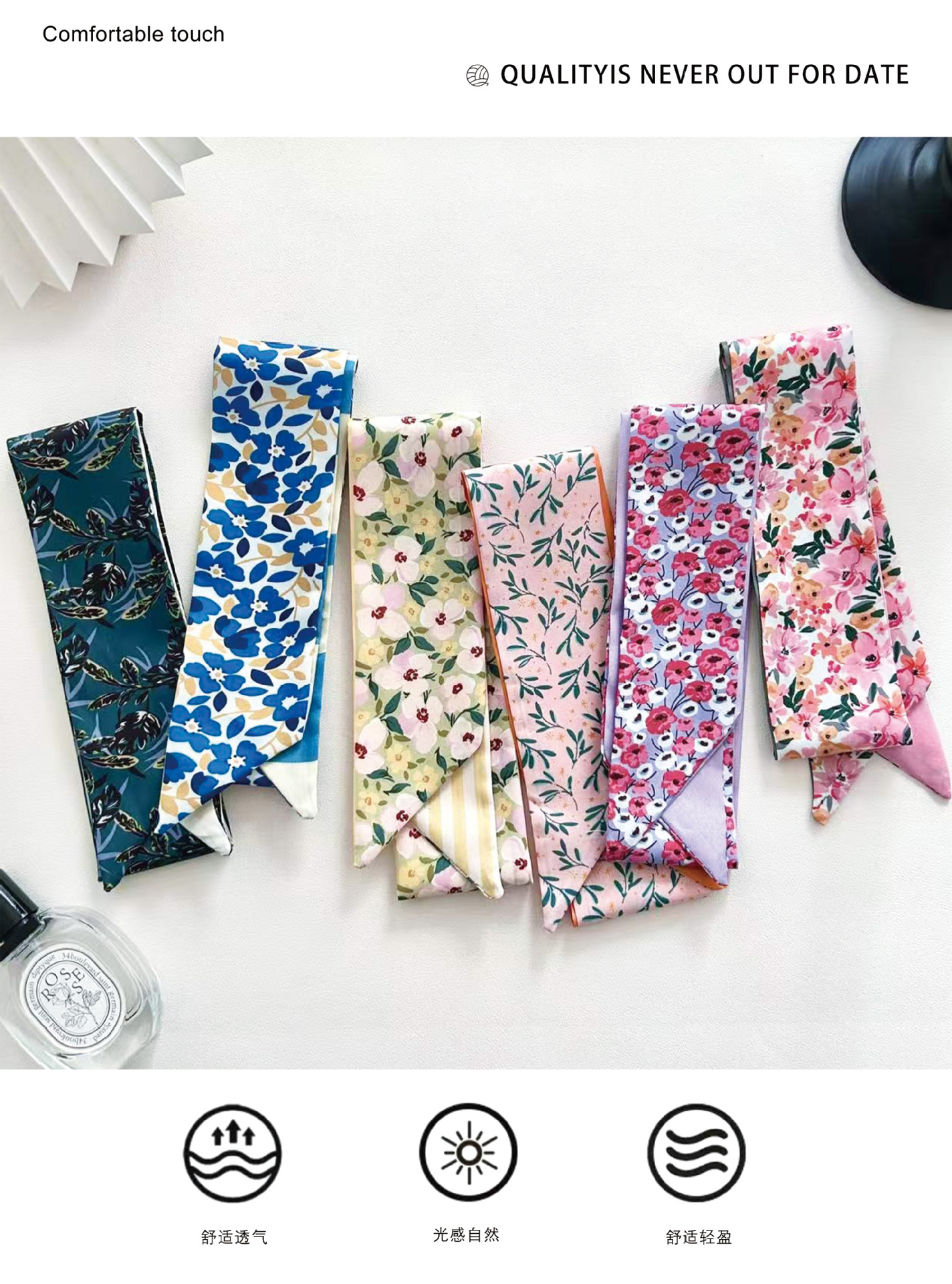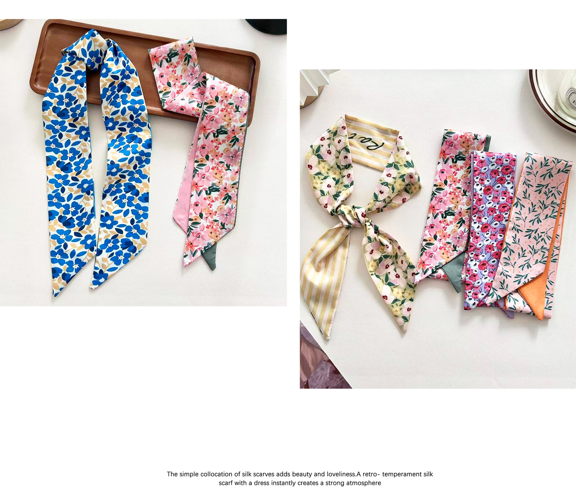 フレンチレトロ風花柄シルクスカーフ、新作多用途ネックタイ、バッグハンドル装飾、おしゃれなヘアバンド、リボンアクセサリー