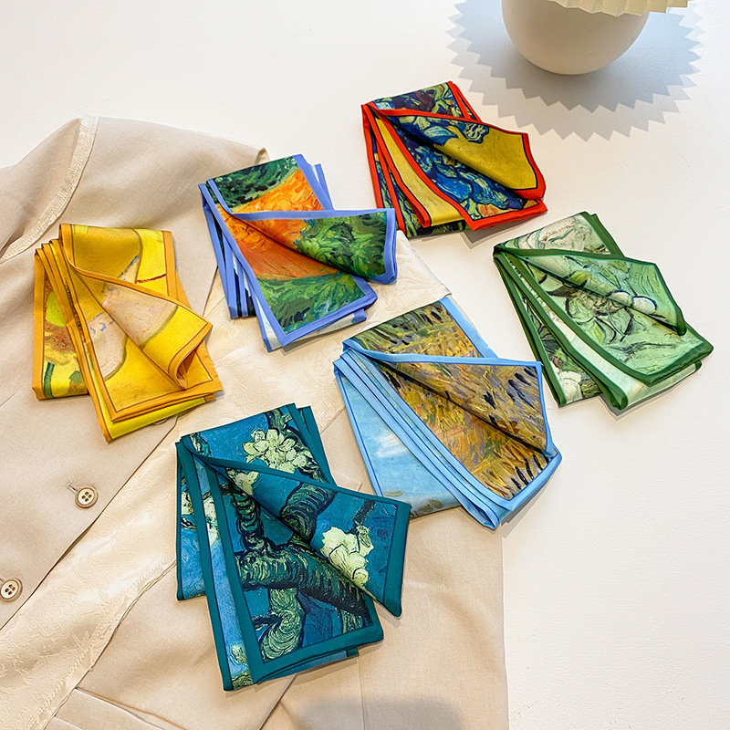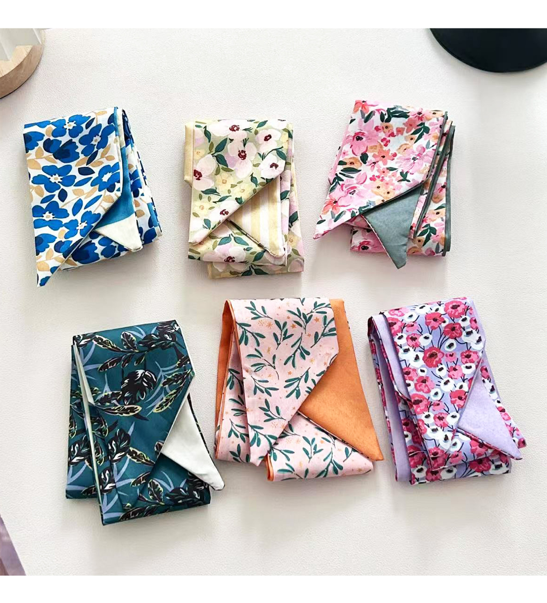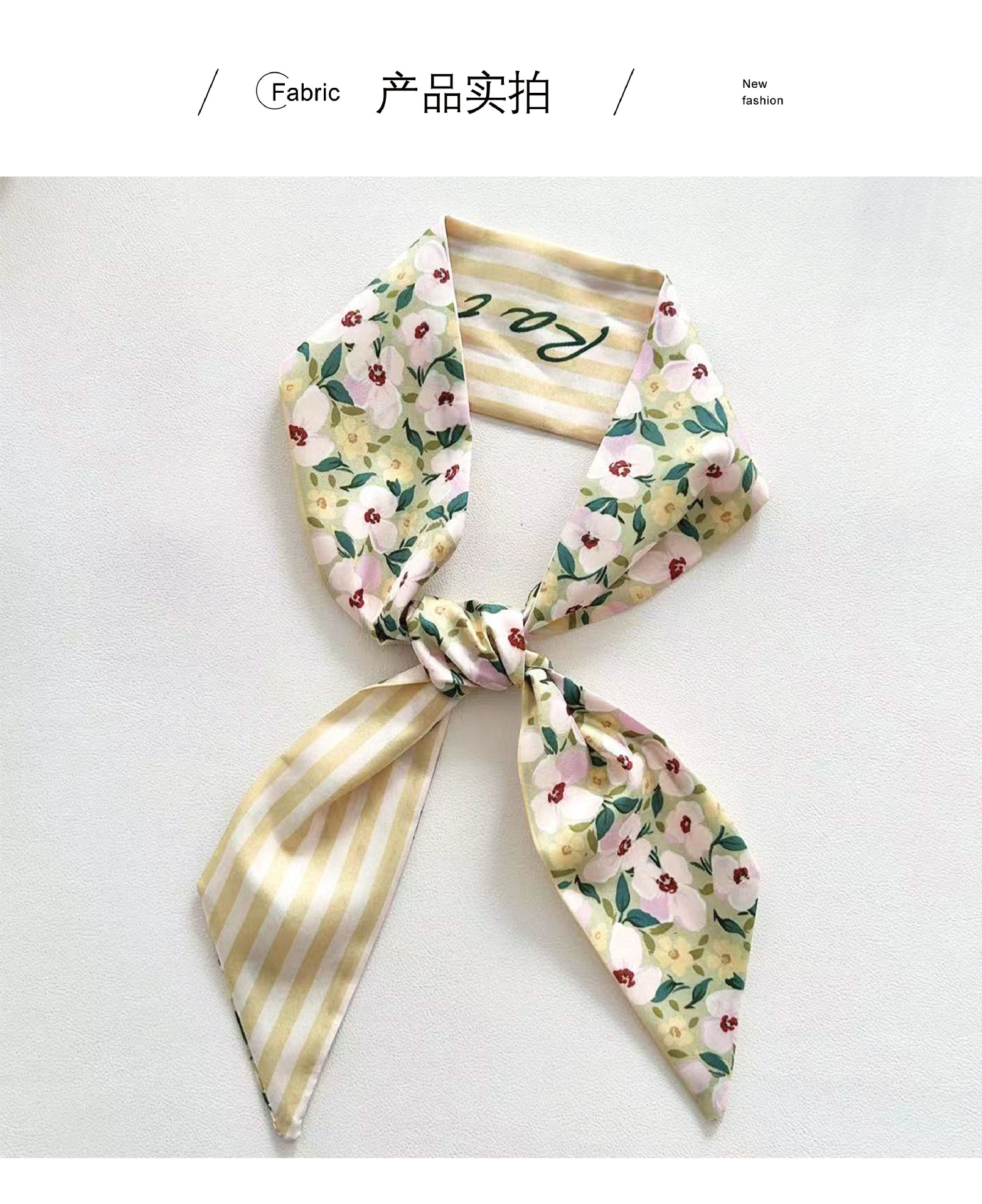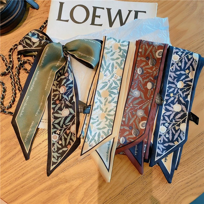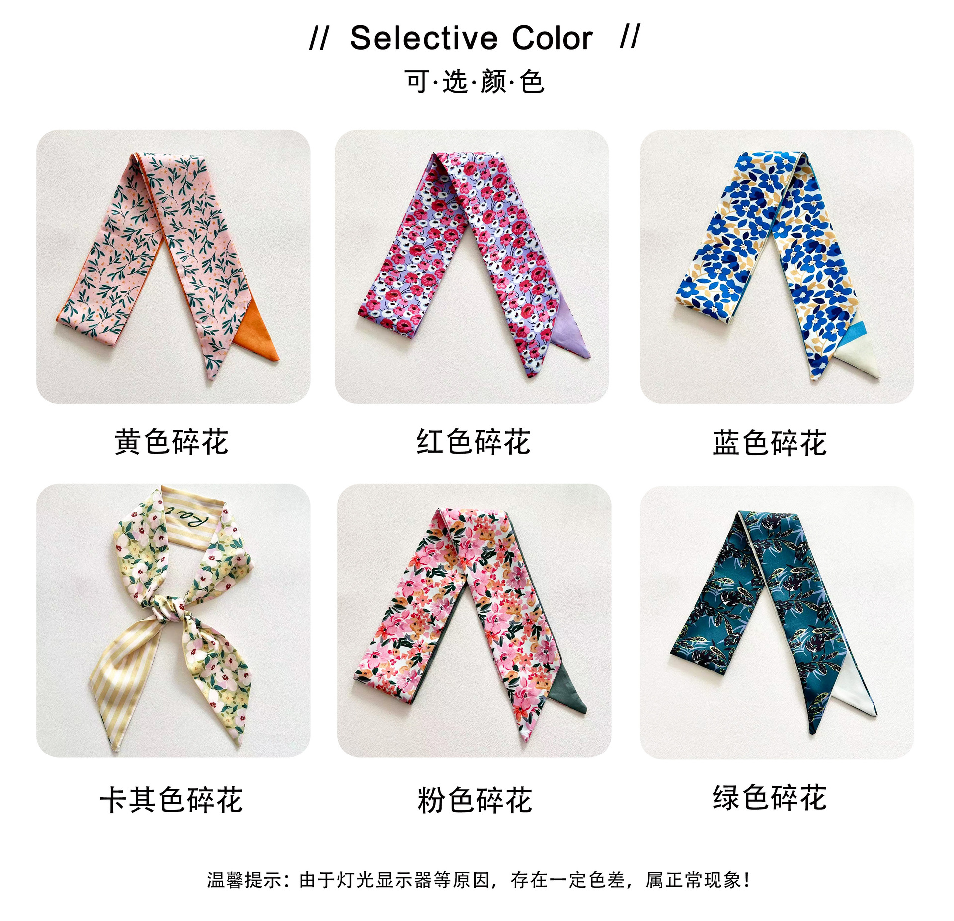 フレンチレトロ風花柄シルクスカーフ、新作多用途ネックタイ、バッグハンドル装飾、おしゃれなヘアバンド、リボンアクセサリー