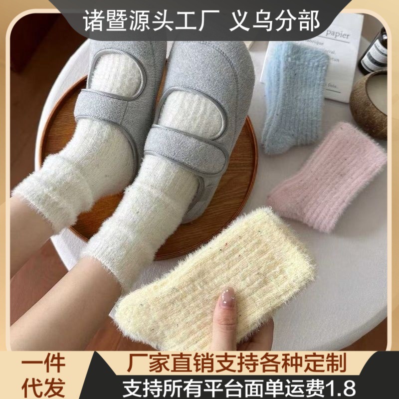 时尚ins风百搭森系水貂绒袜子女保暖加绒加厚毛茸茸秋冬堆堆女袜