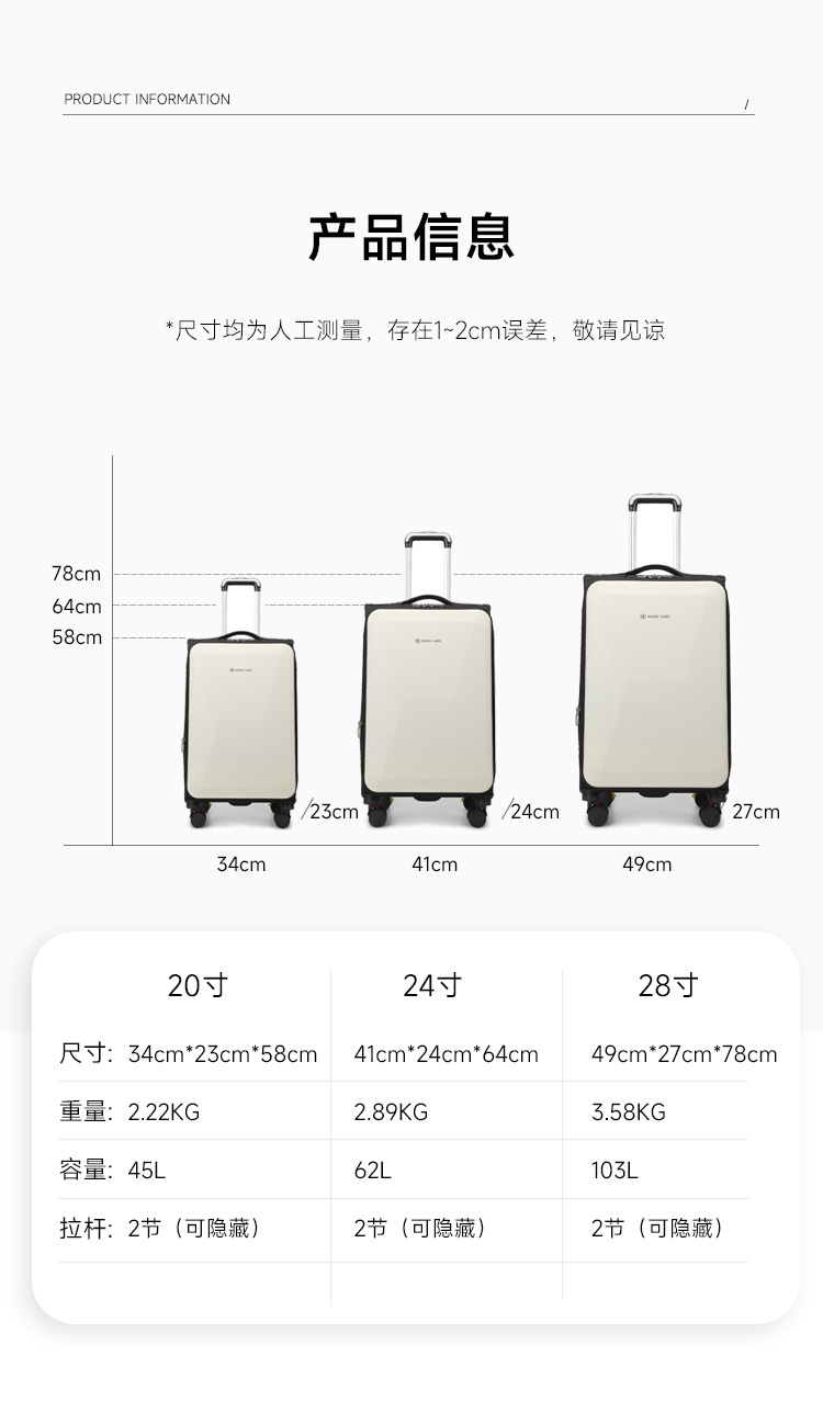 メーカーは国境を越えた輸出硬軟結合超軽量箱20/24/28インチのスーツケースを直接販売している