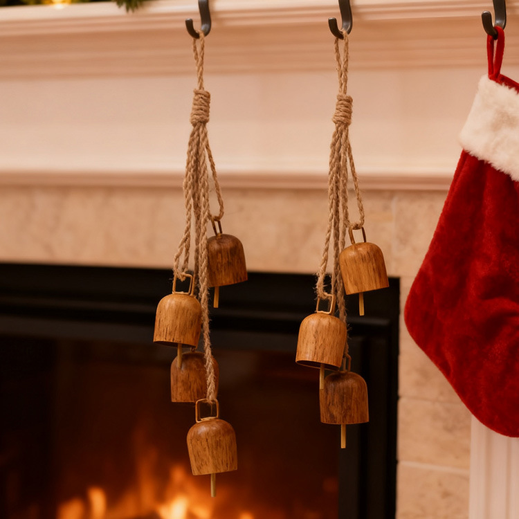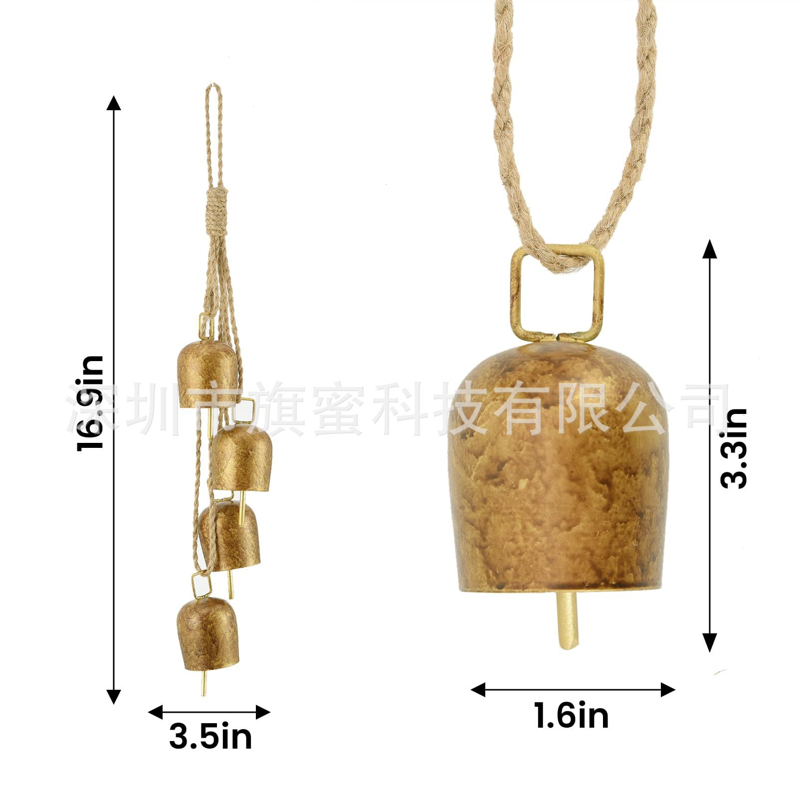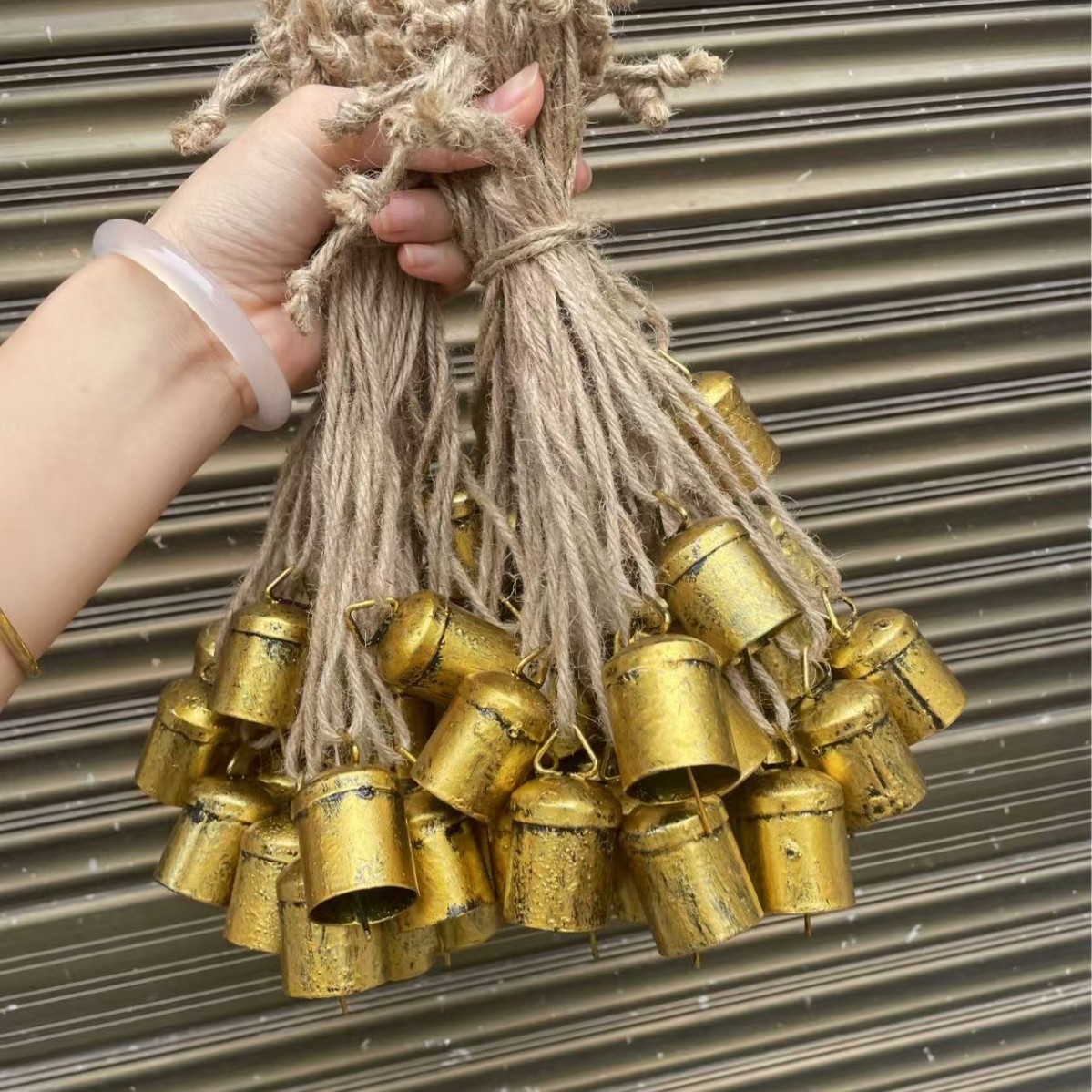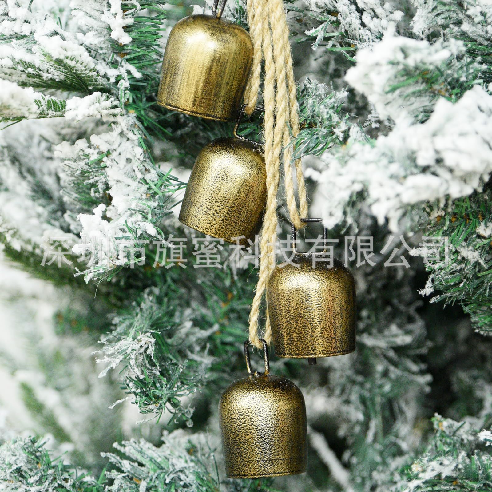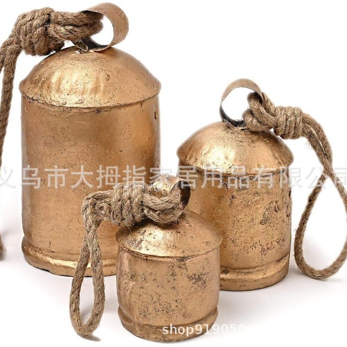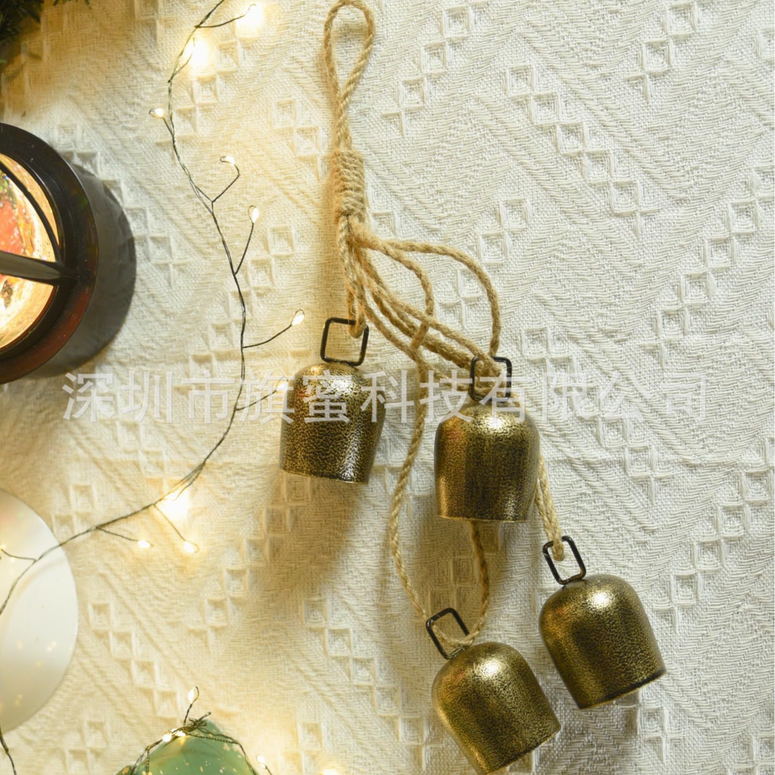 亚马逊圣诞铃铛做旧仿古金属牛铃花园庭院新年装饰品麻绳铃铛挂件