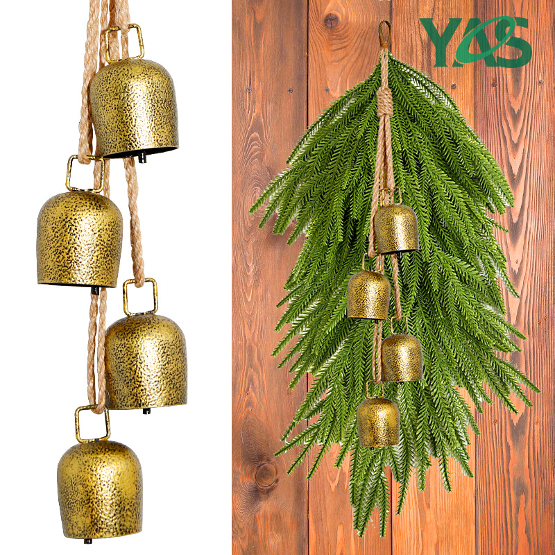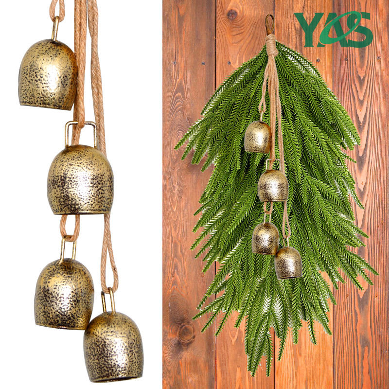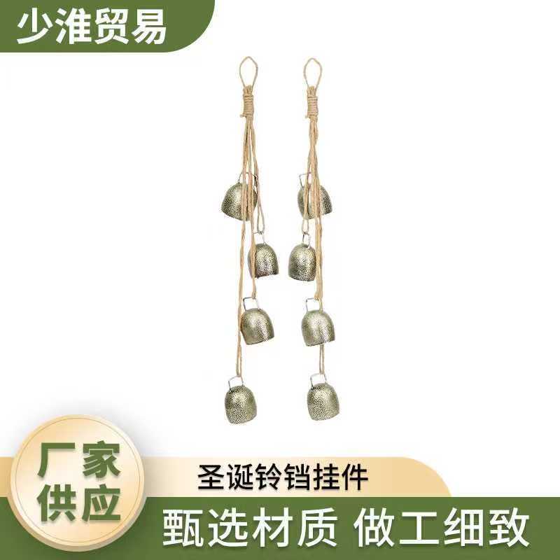 跨境热卖圣诞金属牛铃复古做旧铃铛门挂花环装饰品麻绳铃铛串批发