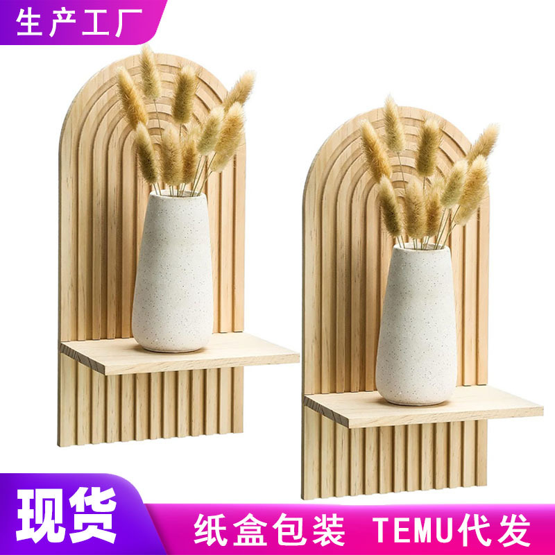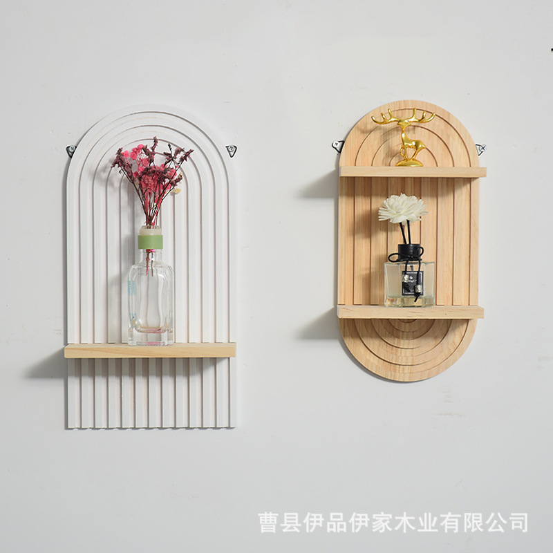 现货 椭圆螺纹实木墙壁置物架玄关装饰蜡烛放置架木制香薰花瓶架
