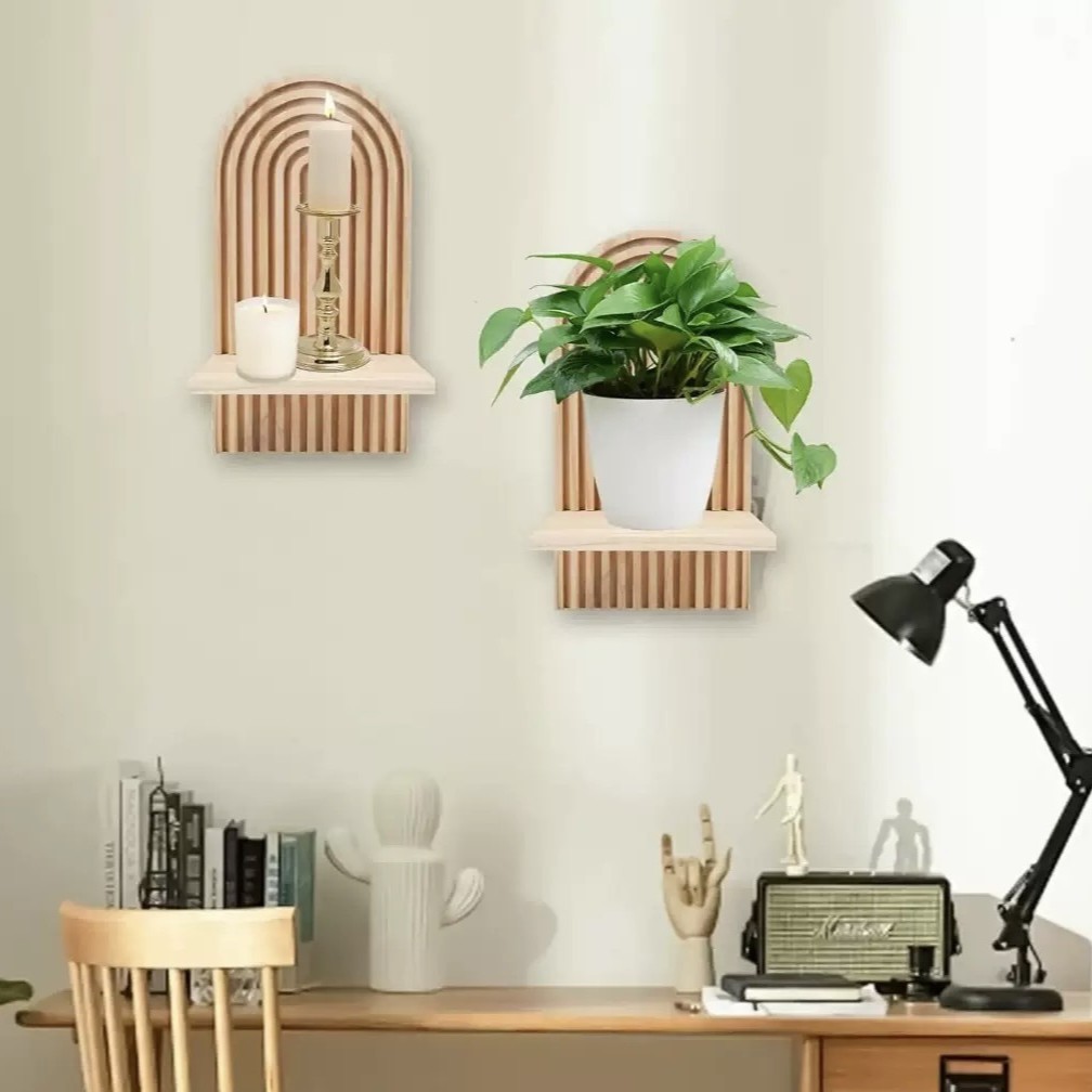 木製壁掛け棚 ボヘミアン風楕円形無垢材壁掛けプランター棚 リビングルームアーチ型壁掛け棚