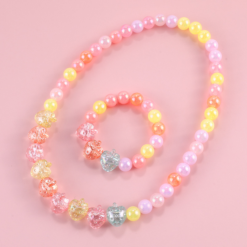 芸芸アクセサリー子供ランダム混色透明アクリルいちご珠ブレスレットネックレス