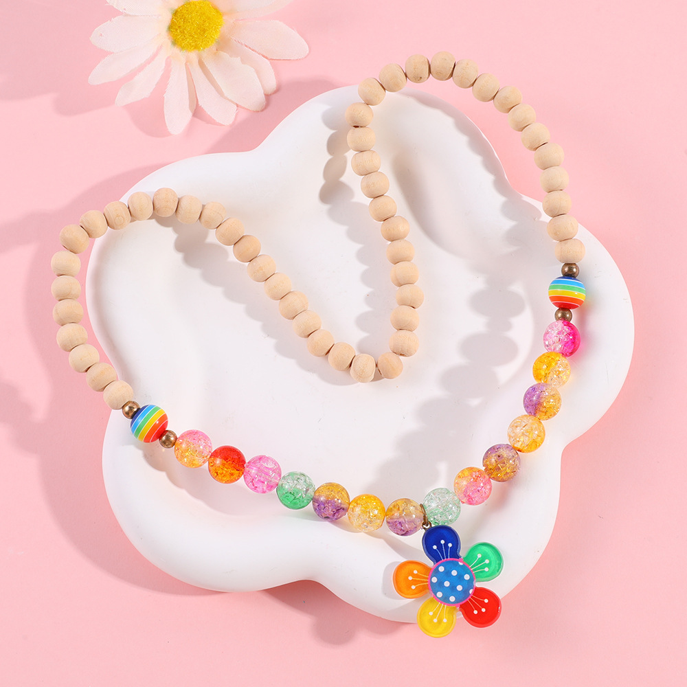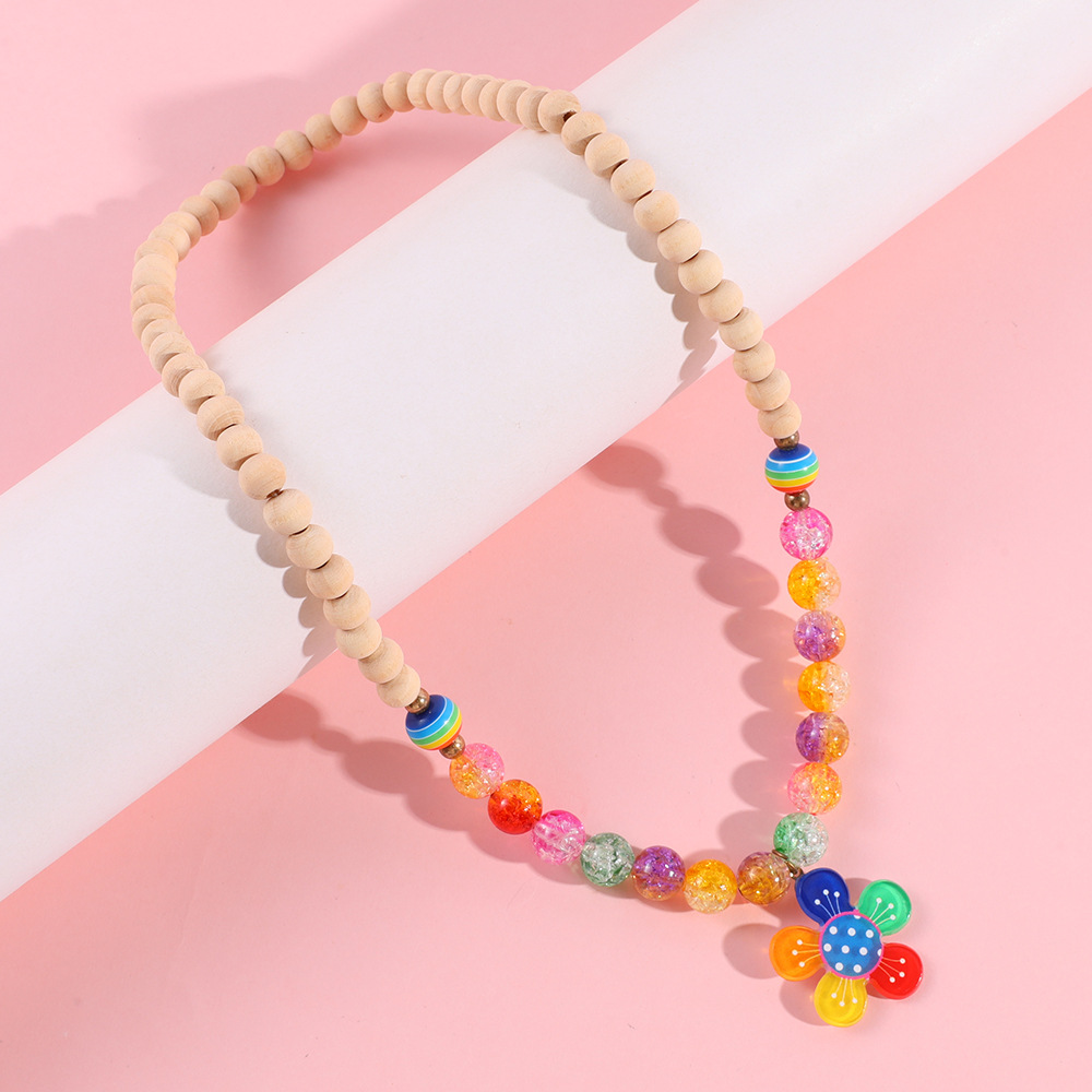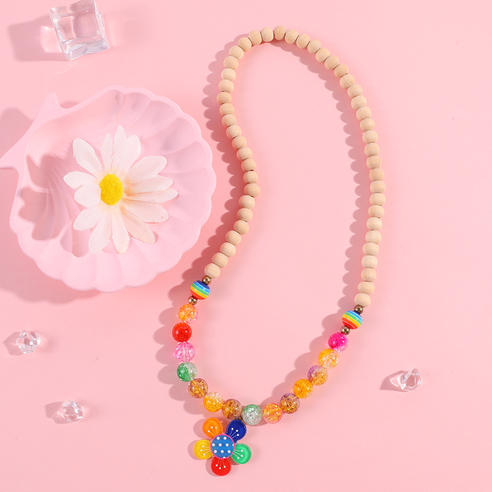 芸芸アクセサリー子供カラーかわいいアクリル太陽花ネックレス木珠ビーズ花ペンダントネックレス