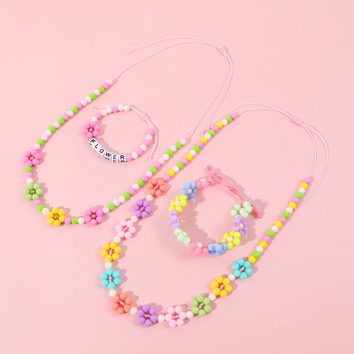 子供用ビーズフラワーブレスレット カラフルアクリルフラワーネックレス 女の子用ジュエリーセット メーカー直送