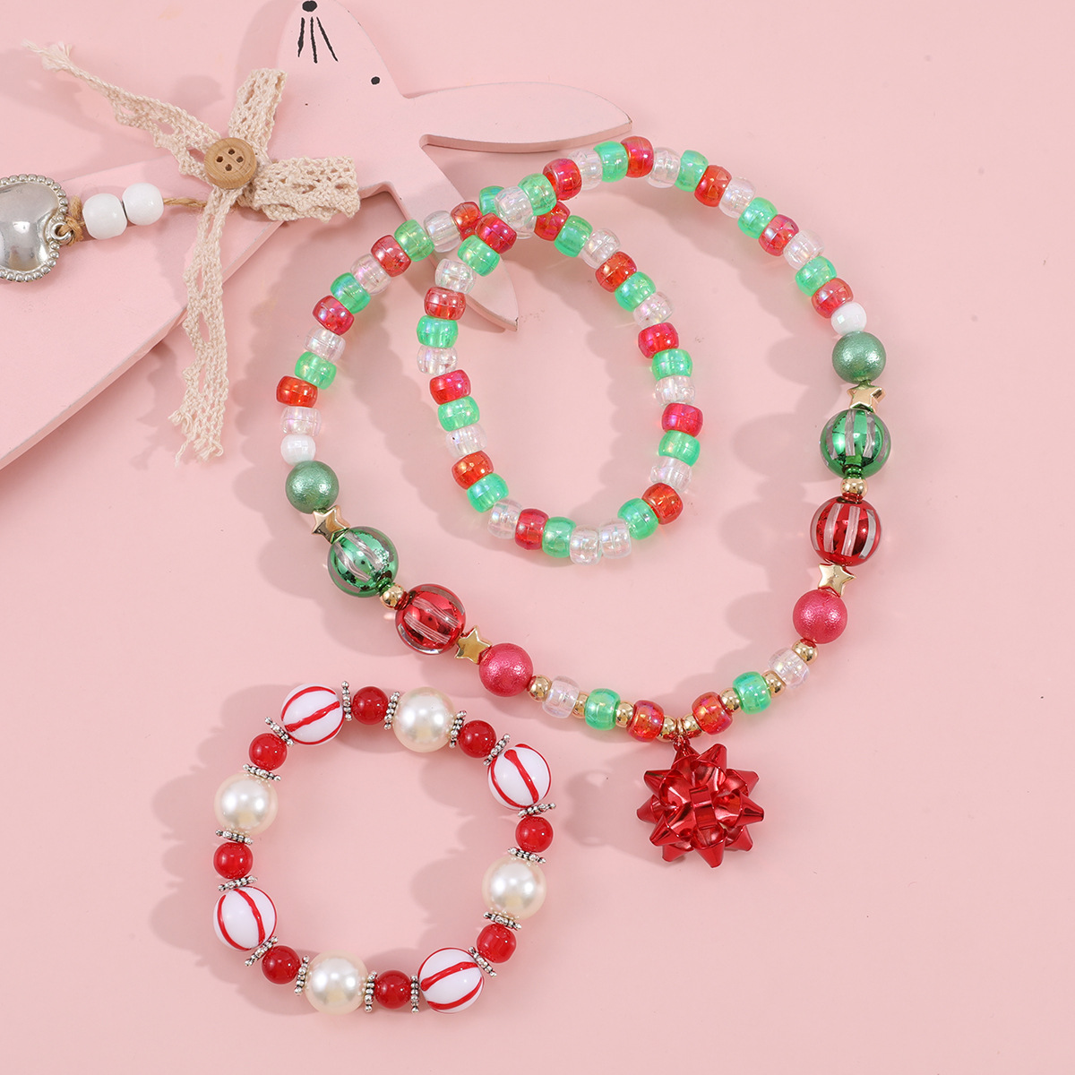芸芸のアクセサリの子供欧米のクロスボーダーの流行の新型のクリスマスの色の桶の玉のネックレスのセットのガラスの玉の手の串