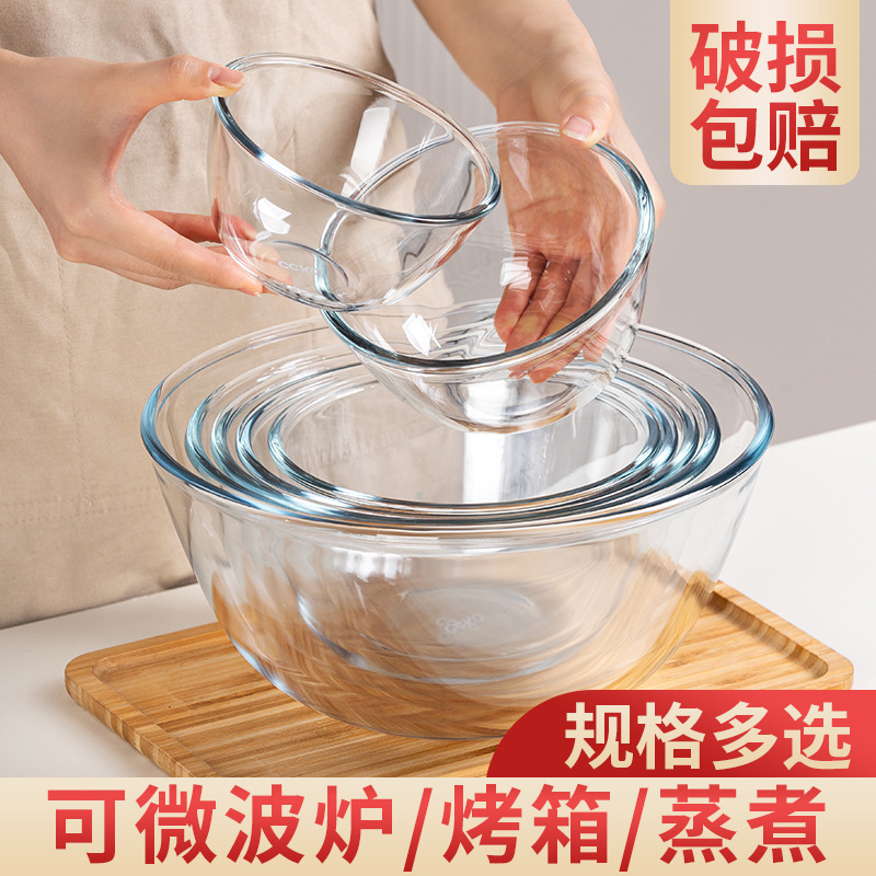 耐高温透明ガラスボウル厚さと洗面器電子レンジ専用高ホウ素シリコンガラス家庭用大型サラダボウル