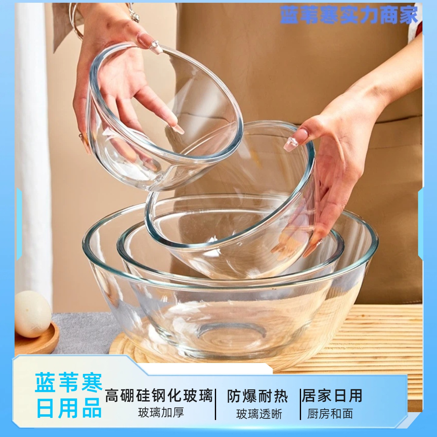 高硼硅玻璃面盆耐热烘焙和面盆家用厨房器皿拌馅玻璃碗蒸煮蛋羹碗