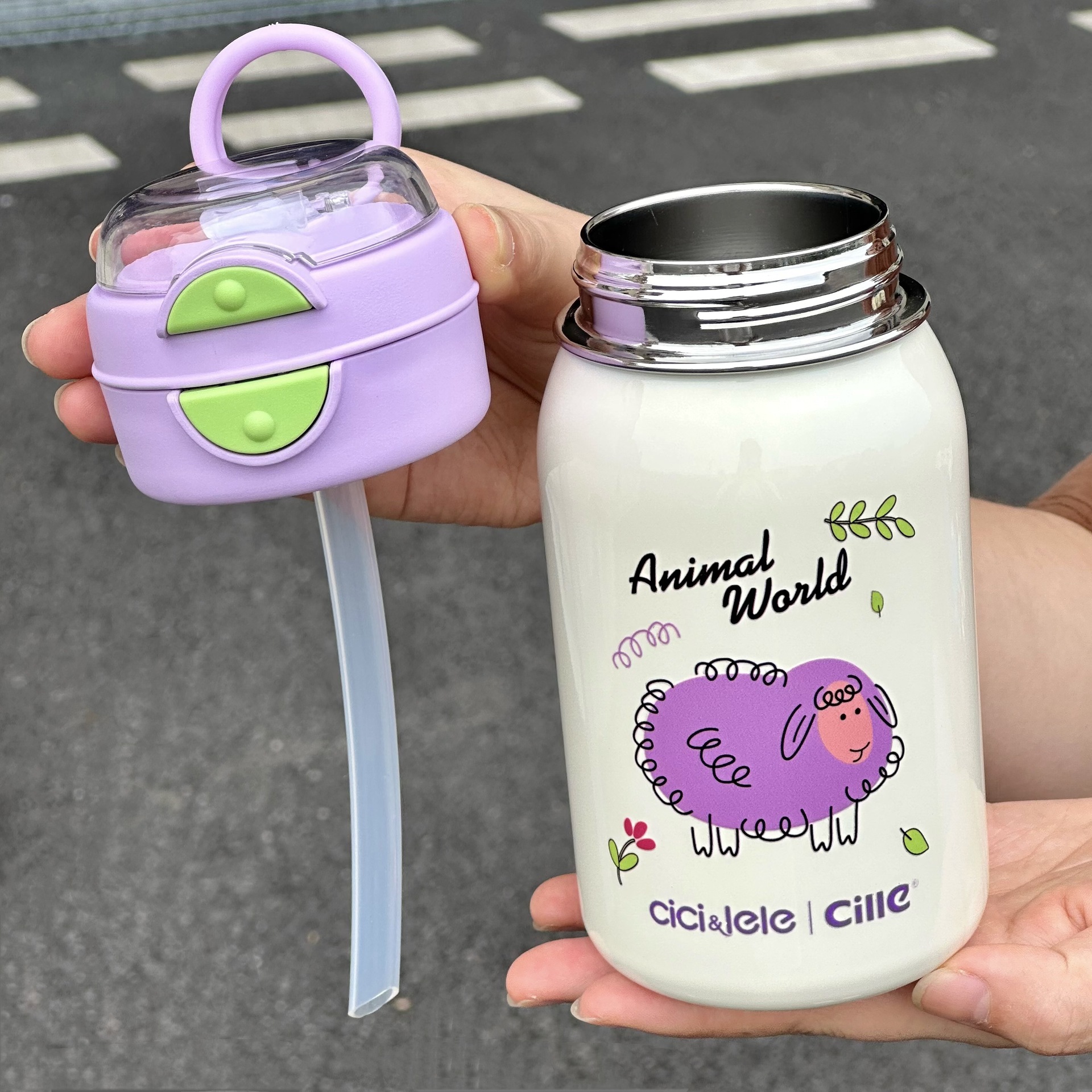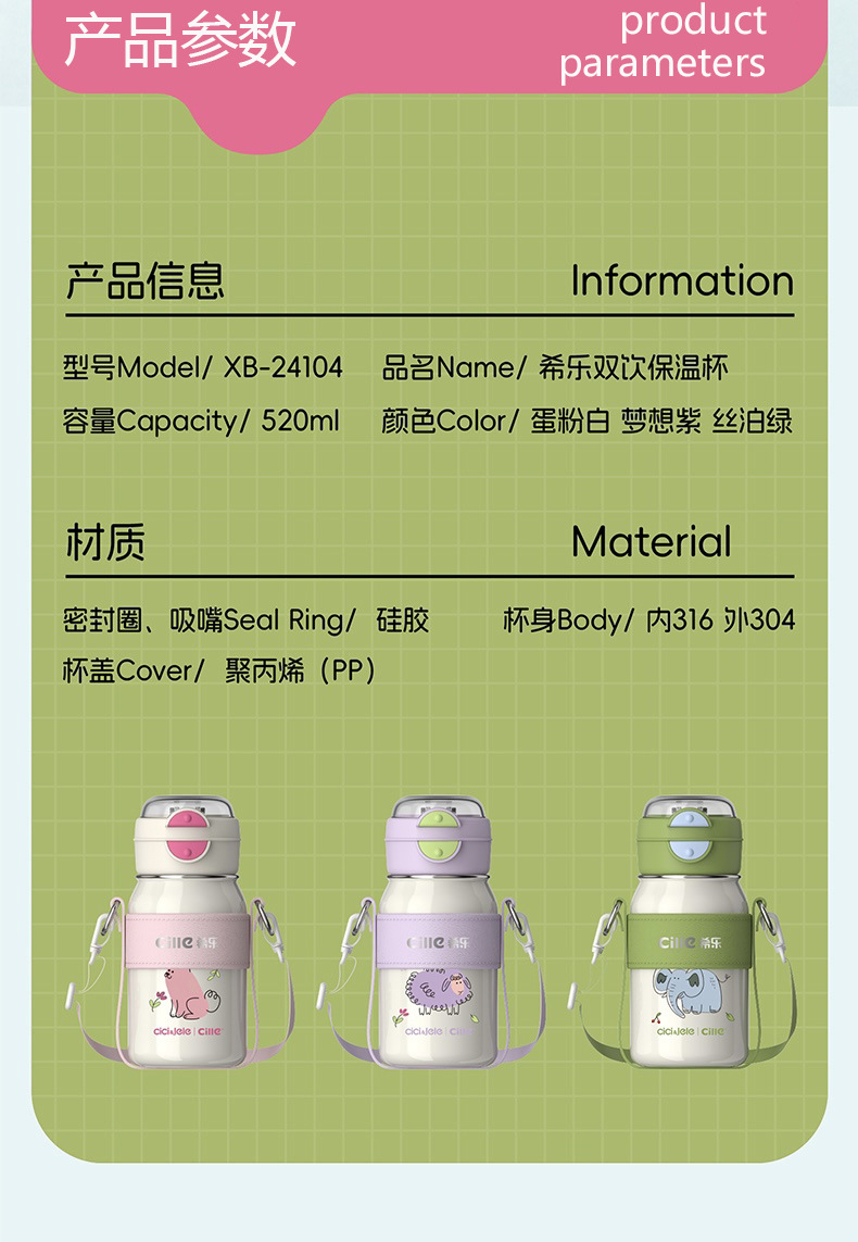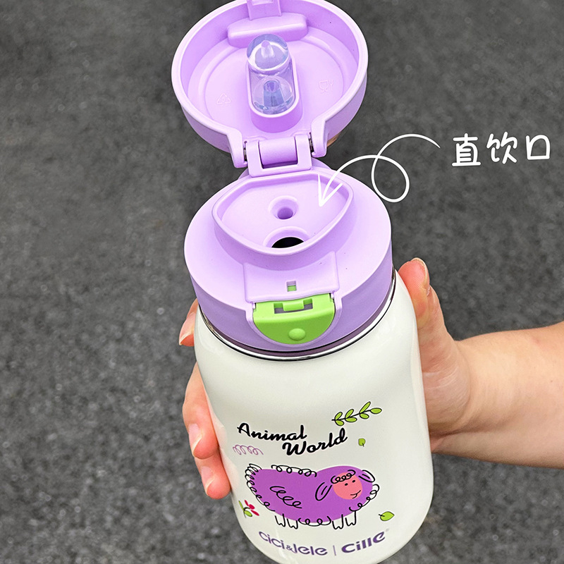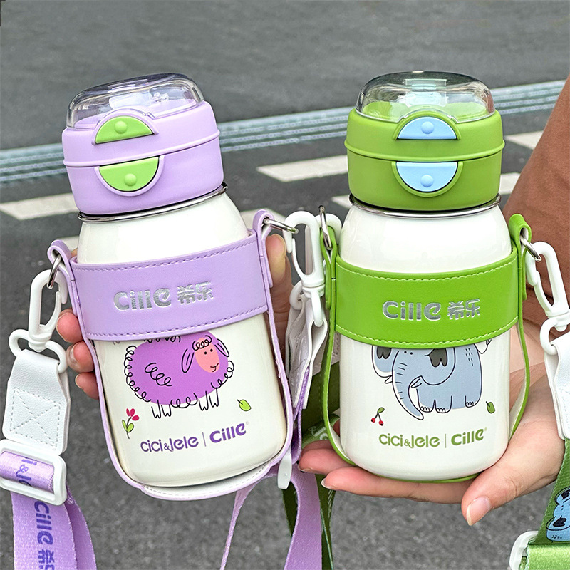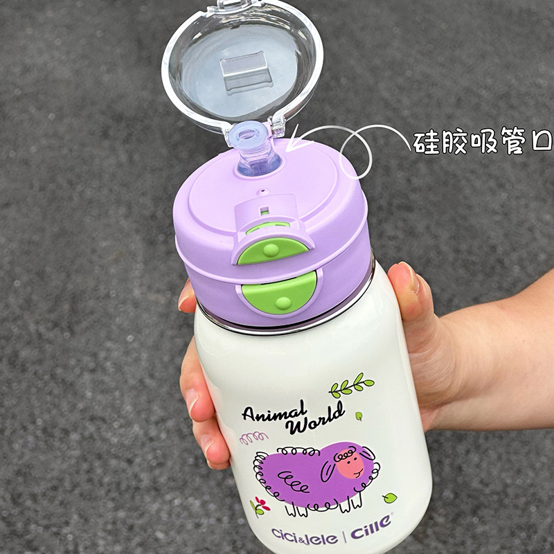 希楽保温カップ大容量女子コップ子供学校携帯ストロー水筒高颜値316ステンレス