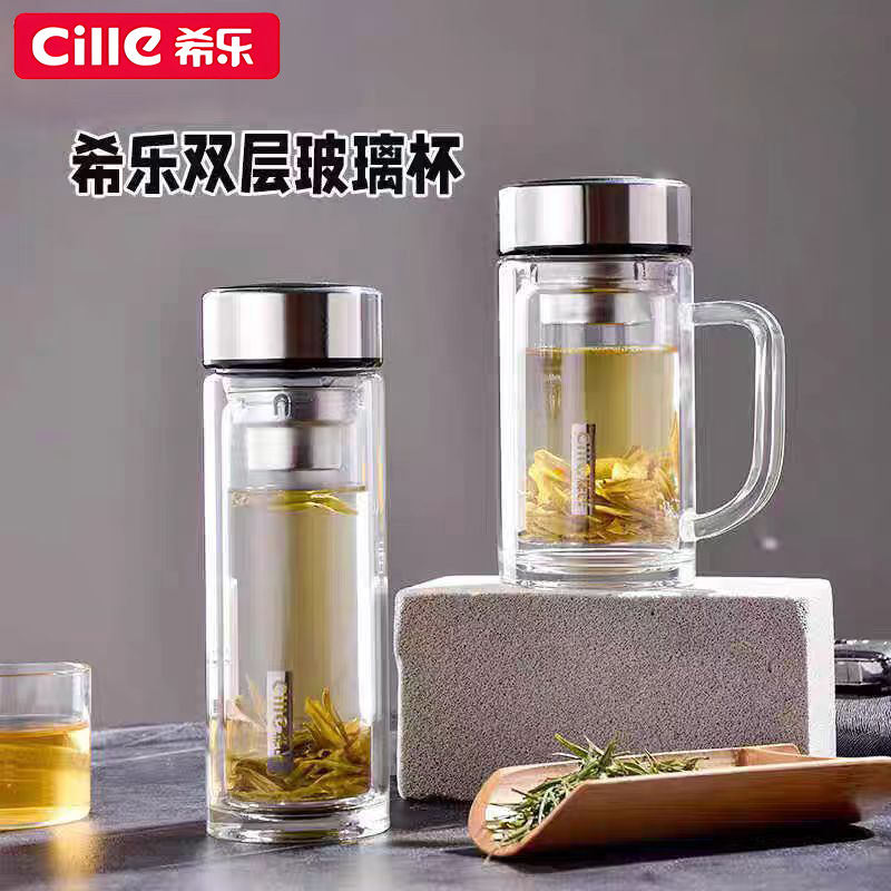 希楽二重グラス断熱家庭用フィルターカップ携帯カップ蓋付き男性ビジネスオフィスカップ