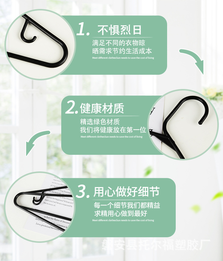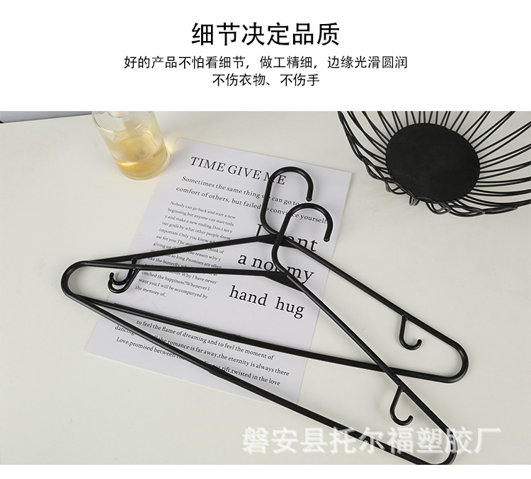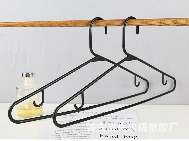 プラスチック製衣類ハンガー、衣料品工場用、クリーニング専門店用、使い捨て衣類ハンガー、卸売、黒色衣類ハンガー、跡が残らない、肩が痛くない