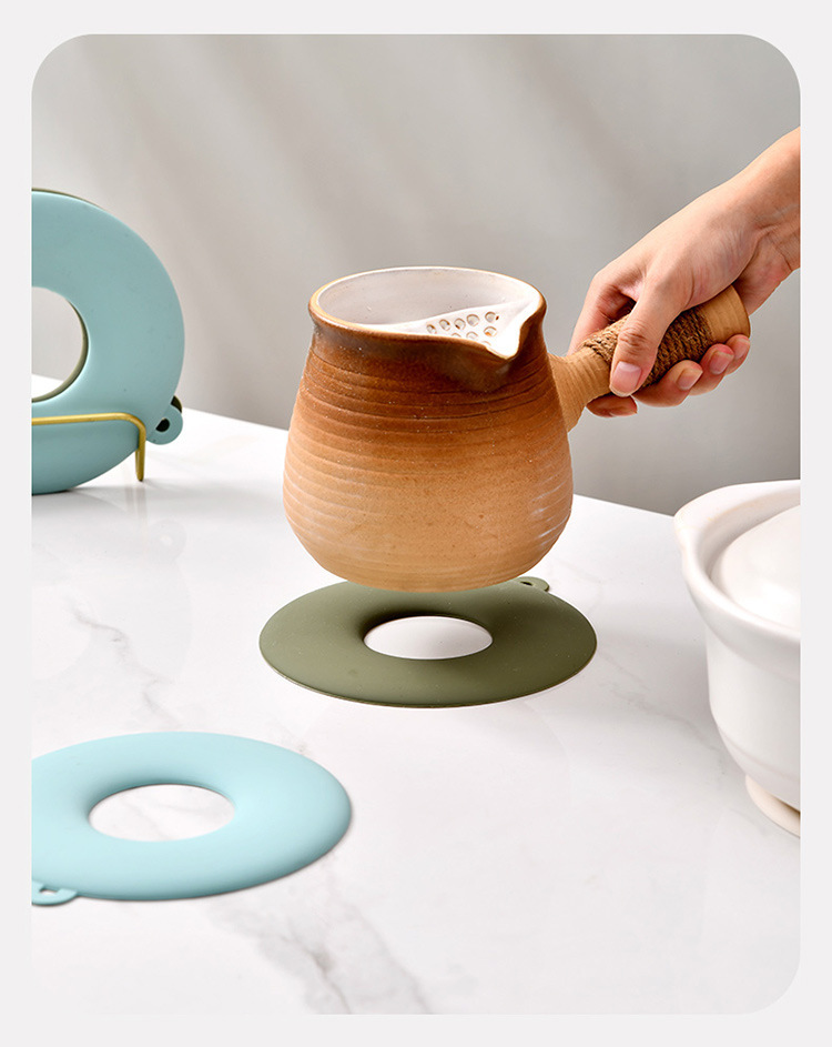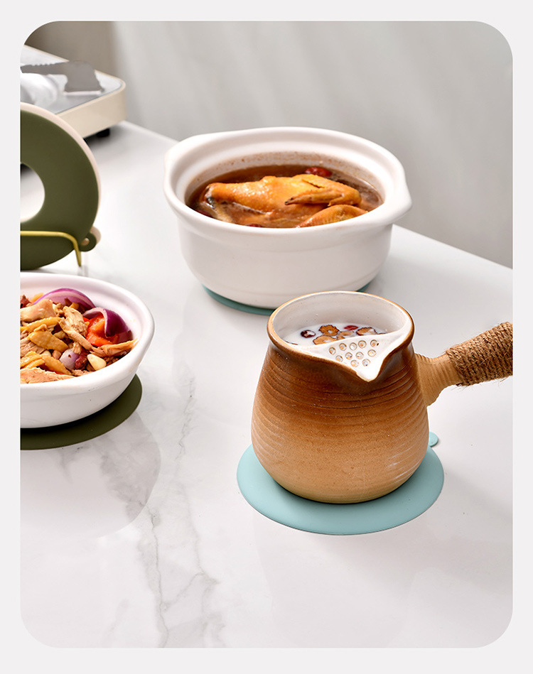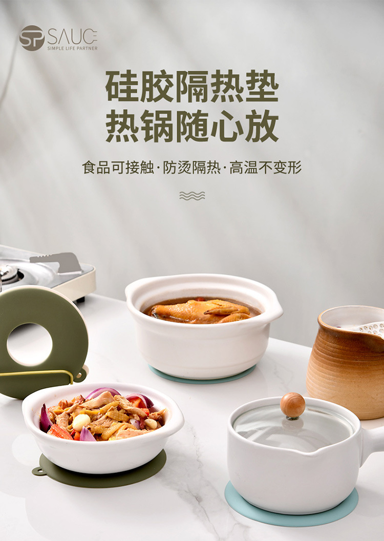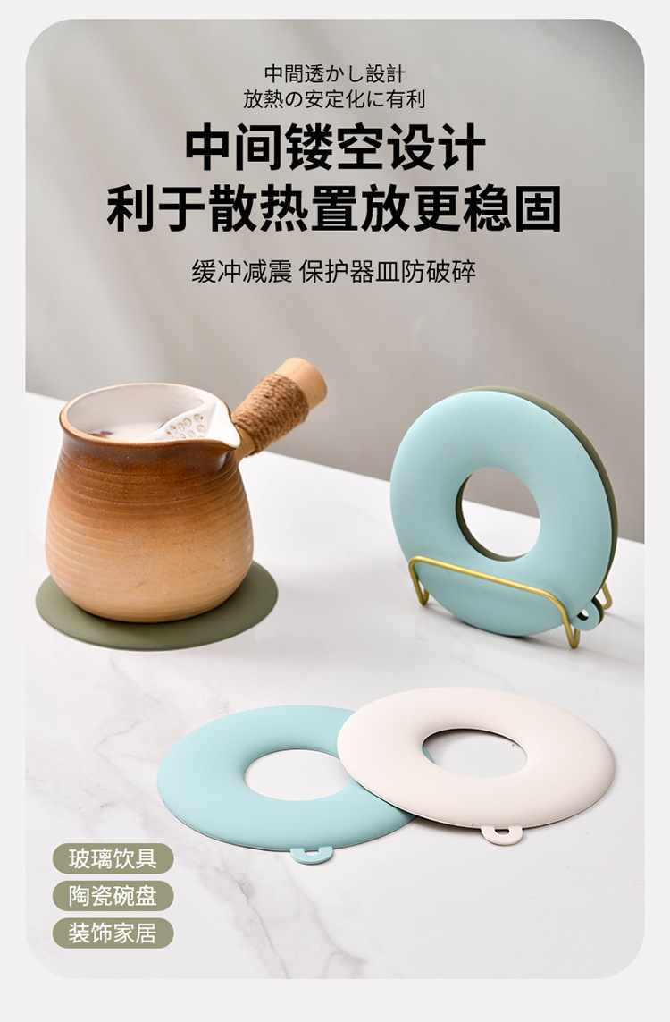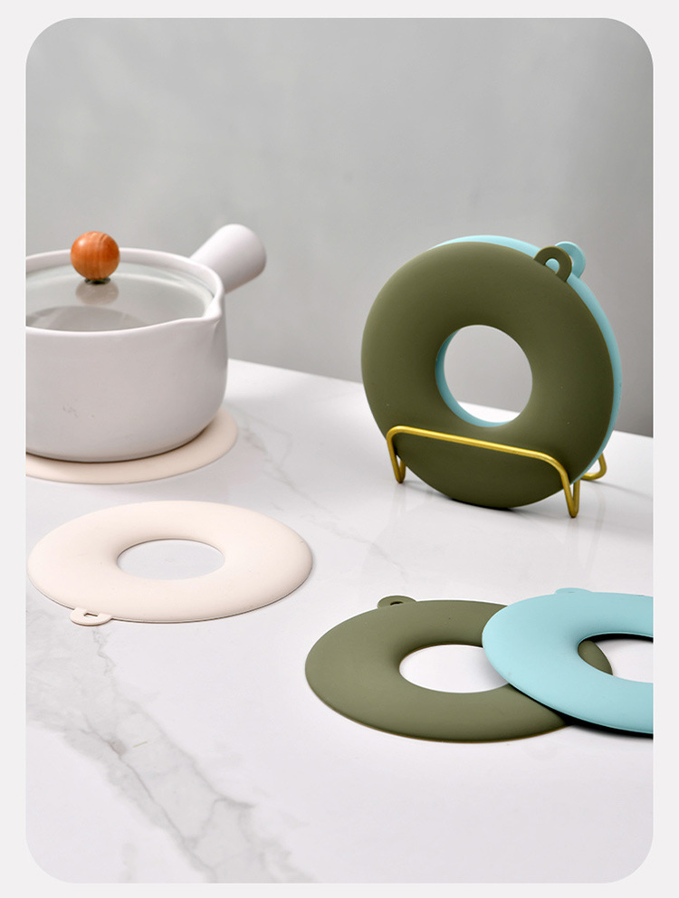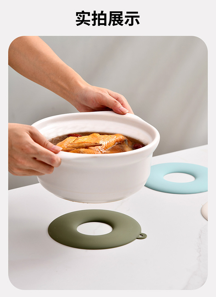 円形の厚いシリカゲルの断熱マットのテーブルのマットの熱い鍋のマットの碗のマットの吊り式のコースターの台所の断熱のマット