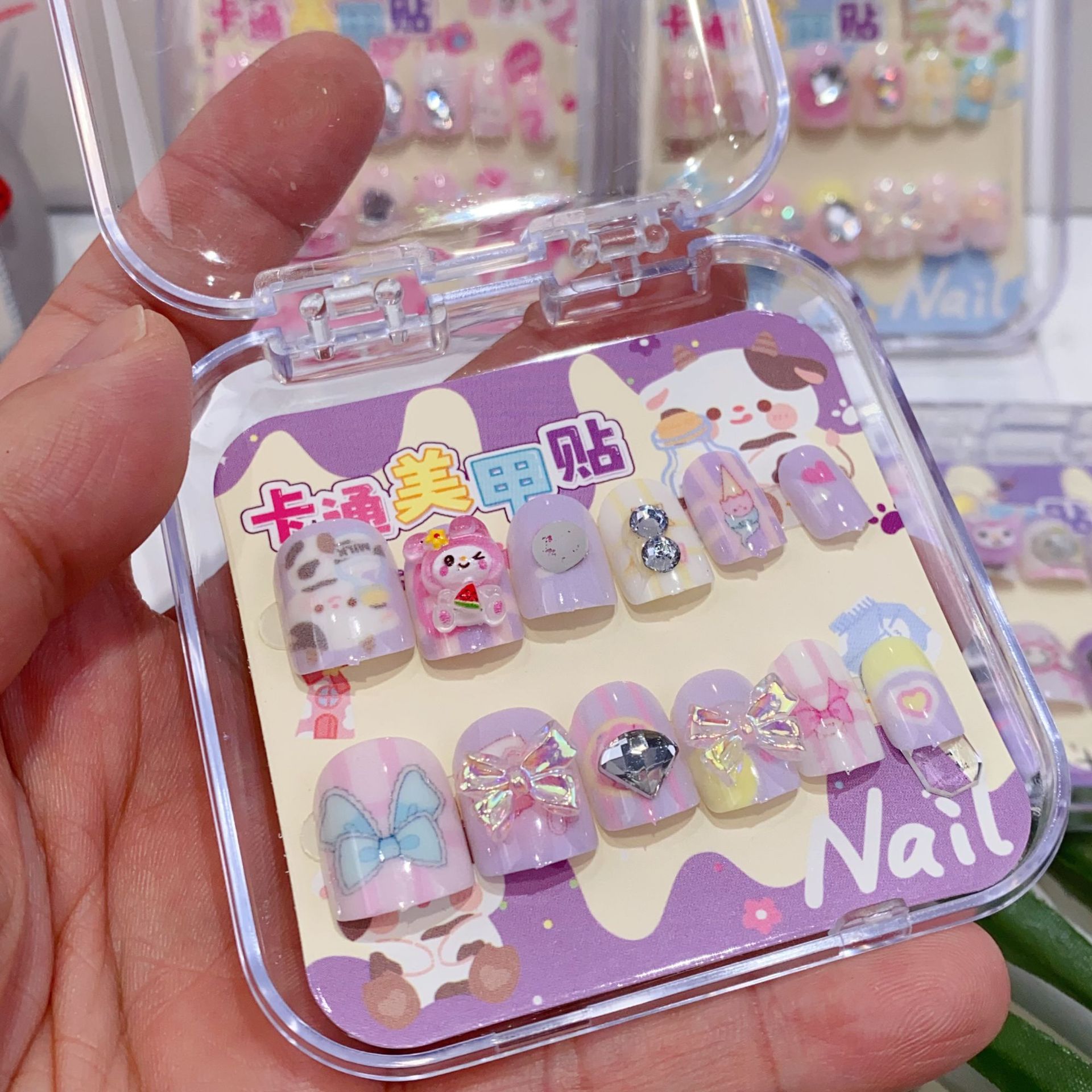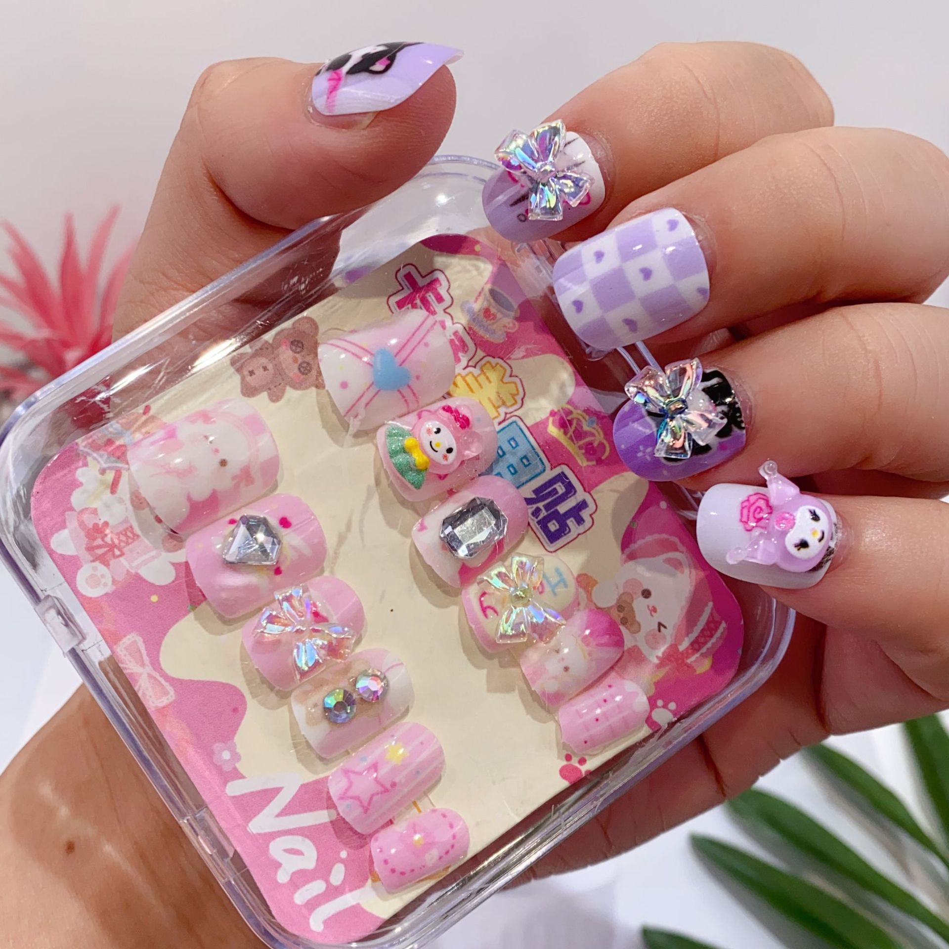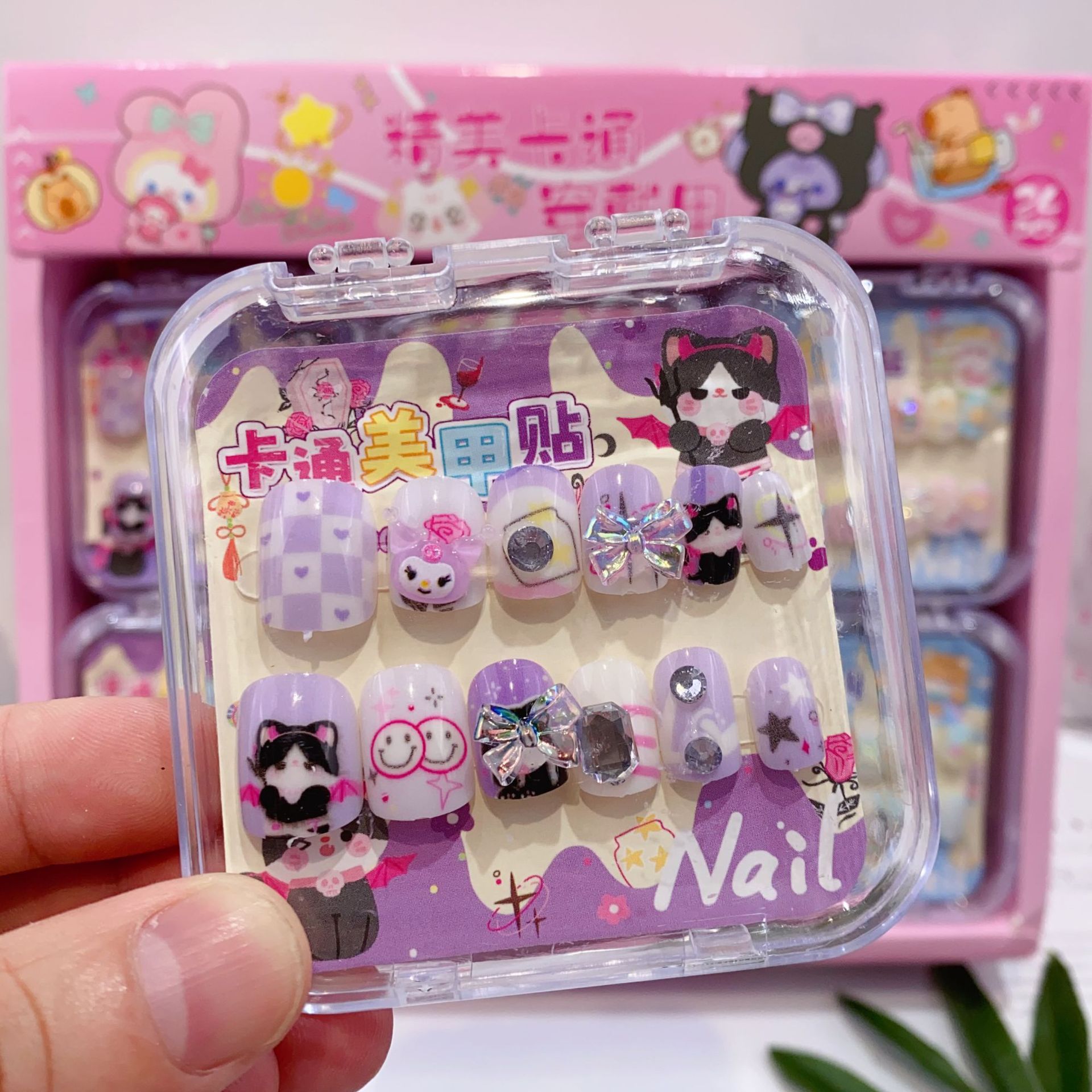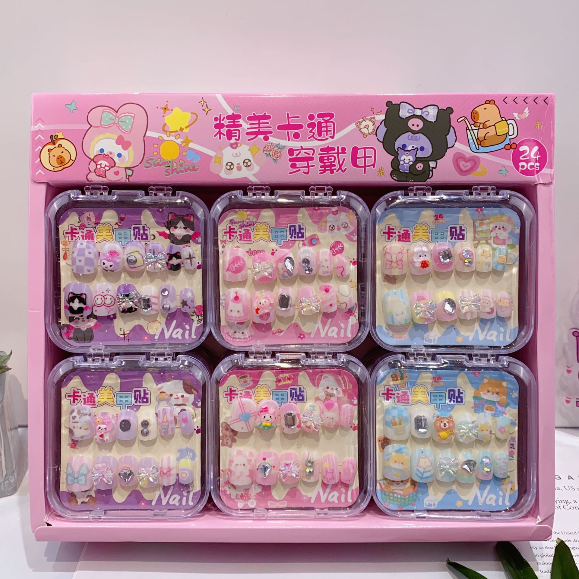 卡通三丽鸥3D立体带钻靓彩穿戴甲自粘背胶指甲贴可爱少女心美甲贴