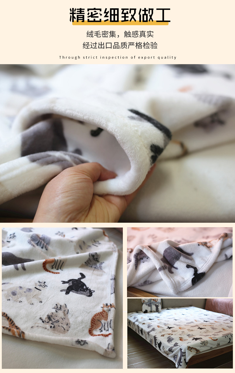 可爱猫咪牛奶绒法兰绒毛毯床单午睡毯午休空调毯沙发盖毯圣诞毯子