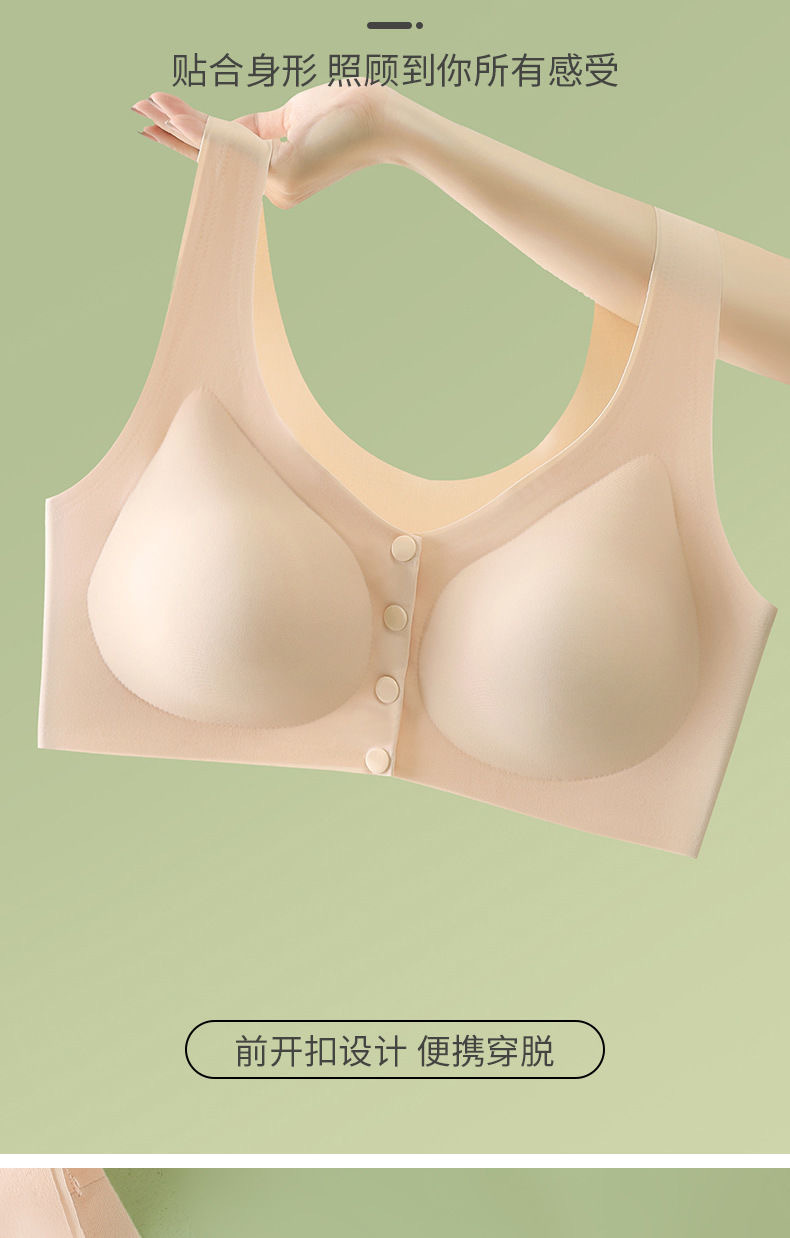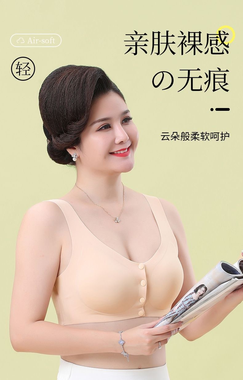 妈妈内衣文胸中老年人妇女背心式前扣大码薄款冰丝无钢圈胸罩夏季