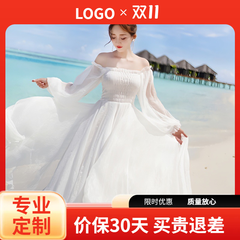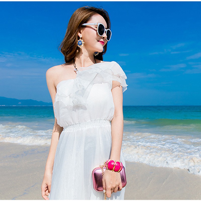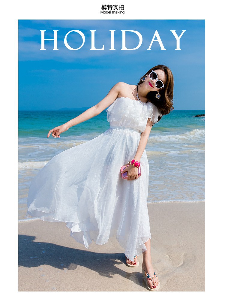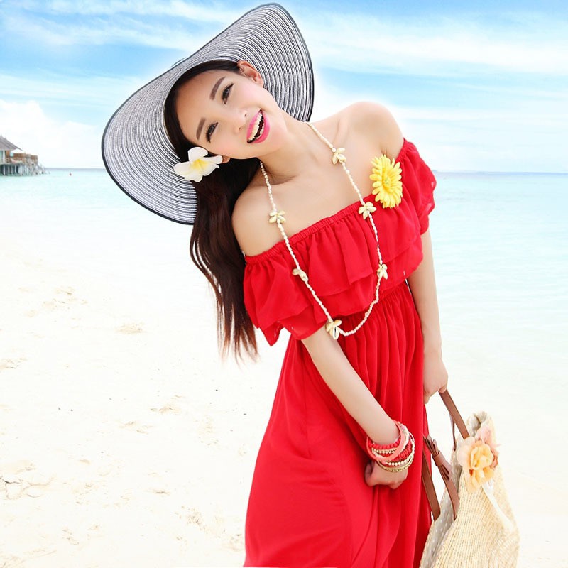 2025新型の大きいスカートの肩のシフォンのワンピースの女性の夏の海辺のビーチのスカートの優しいアンドロメダのスカートは腰を収めます。