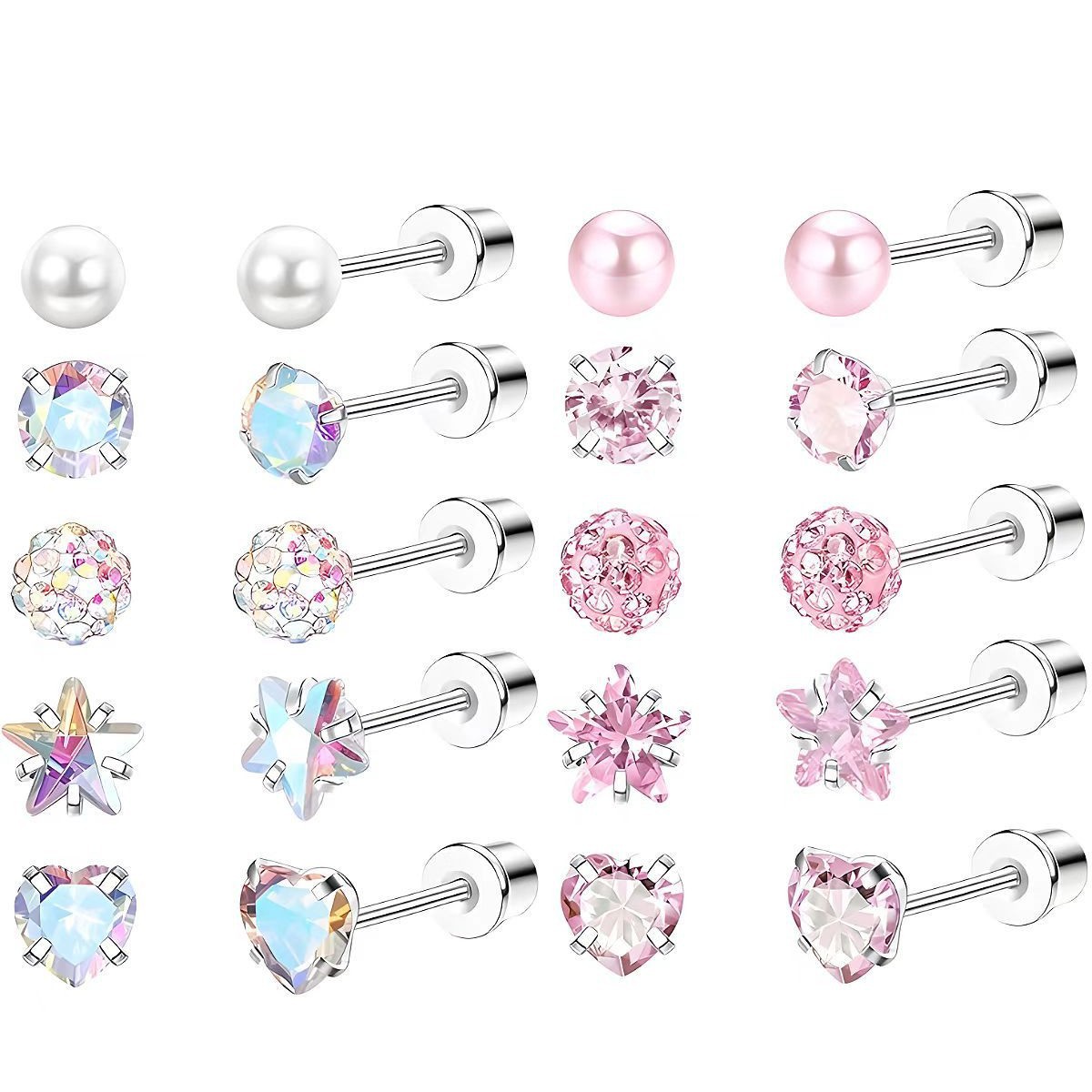 アマゾンの新型ステンレス五角星耳骨釘高級感ねじりねじ耳釘ピンク24点セット