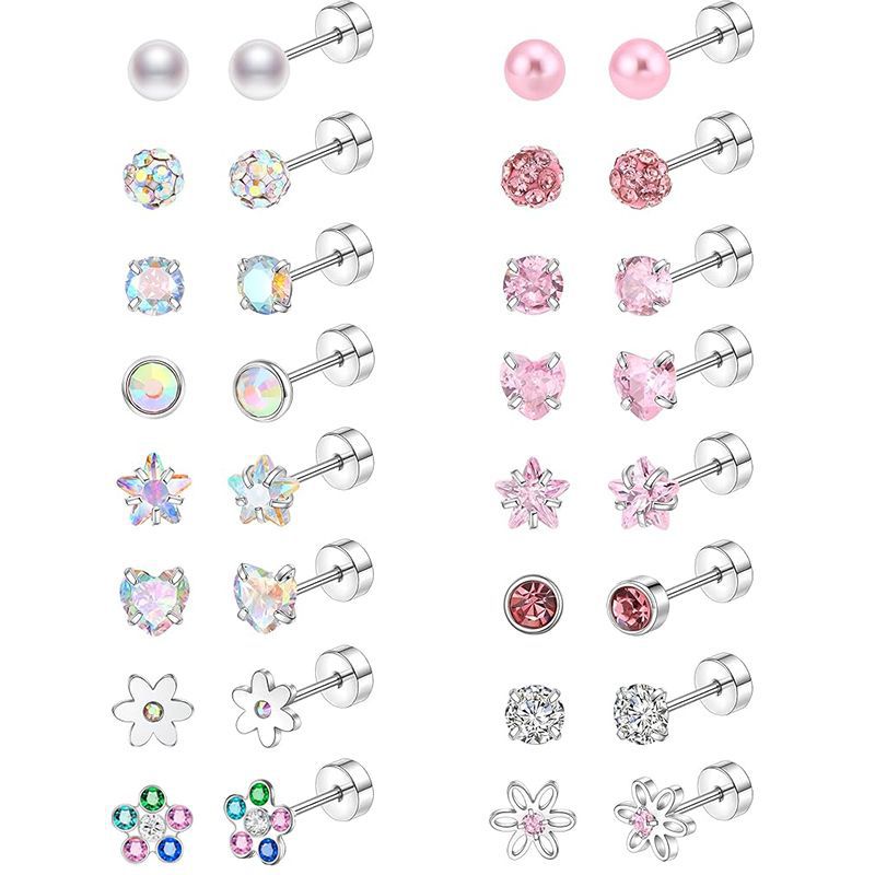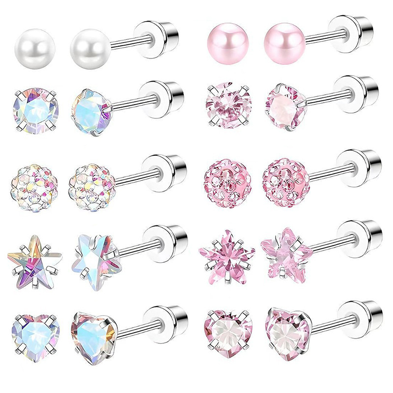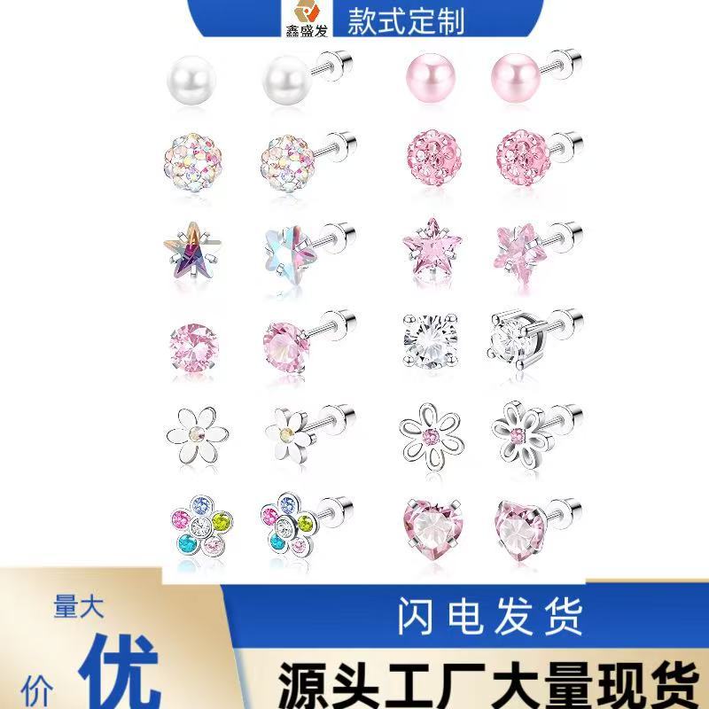 アマゾンの人気グループピンクの女の子ピアスチタン鋼ジルコン帽子ねじ耳栓少女ピアス卸売り