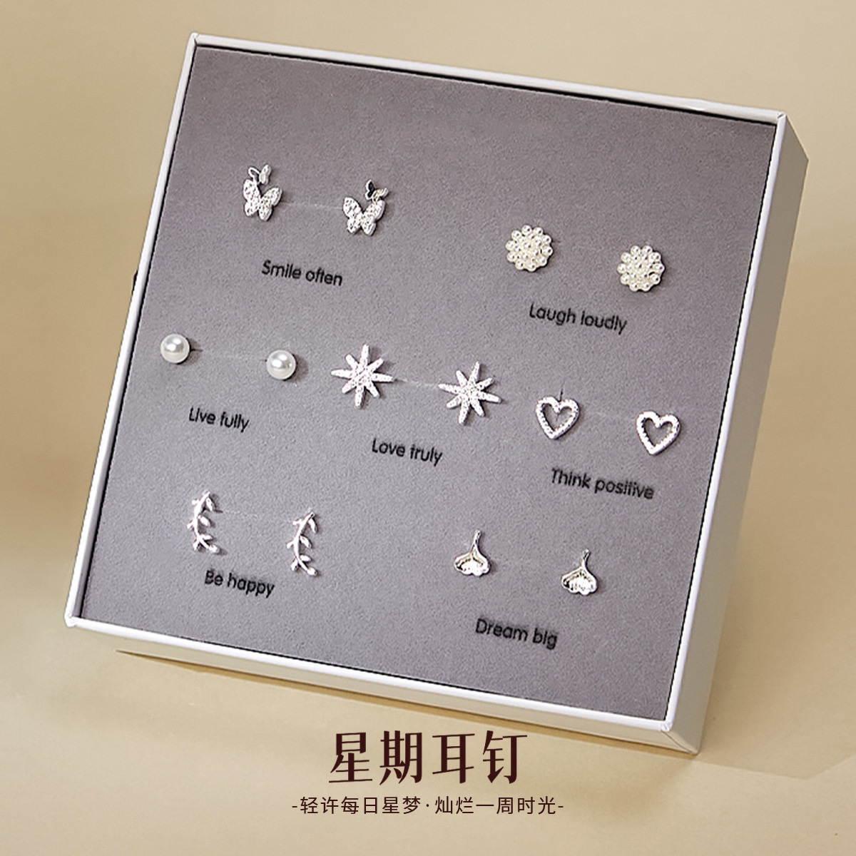 S925銀針一週間ピアス7ペアプレゼント超値洗練多耳穴イヤリングセット高級気質