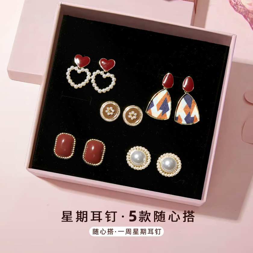 スポットクリエイティブウィークリーイヤリングボックス、週7日、中国のバレンタインデーギフトボックス、イヤリングボックス、ジュエリーボックス、包装箱