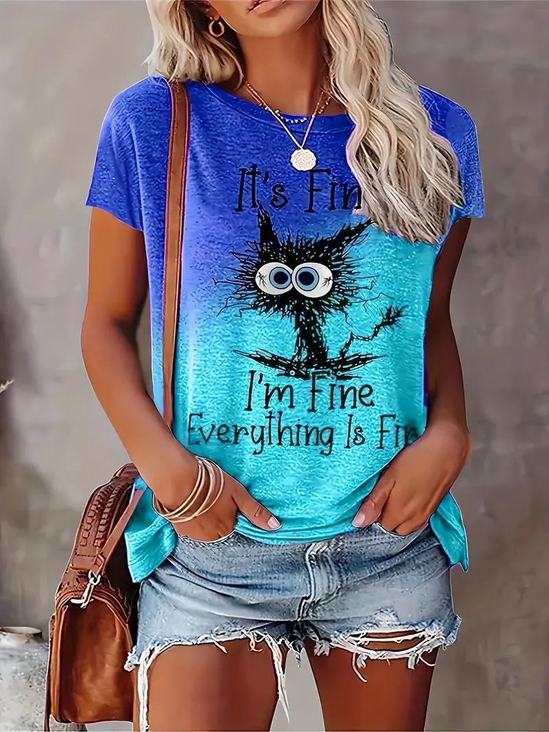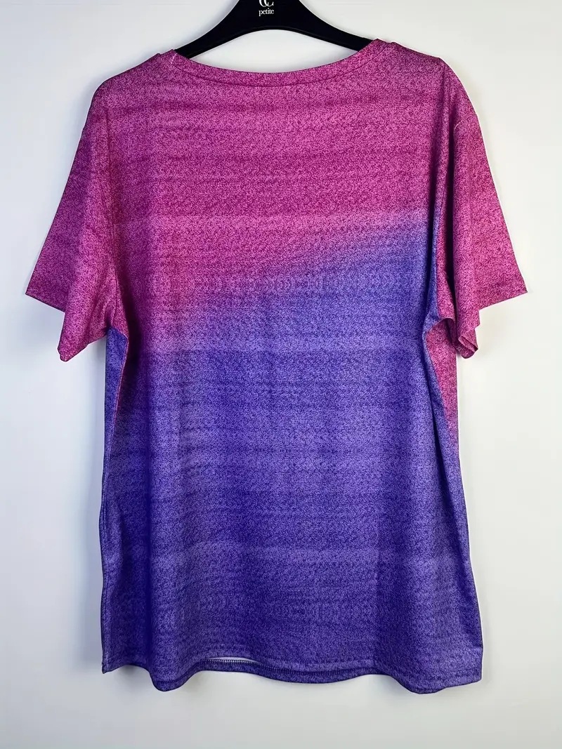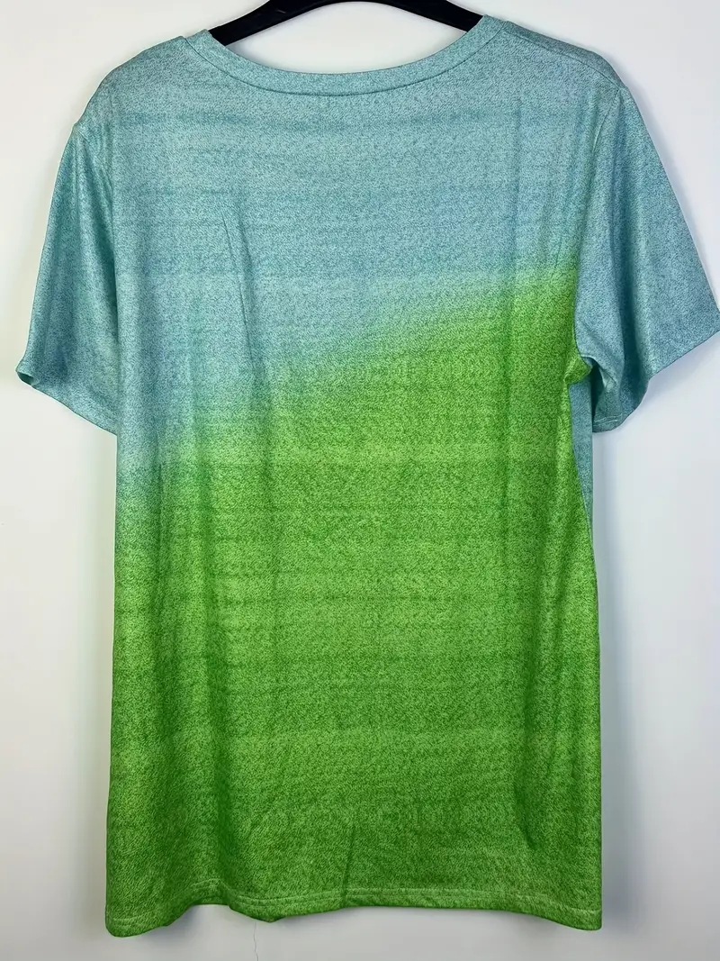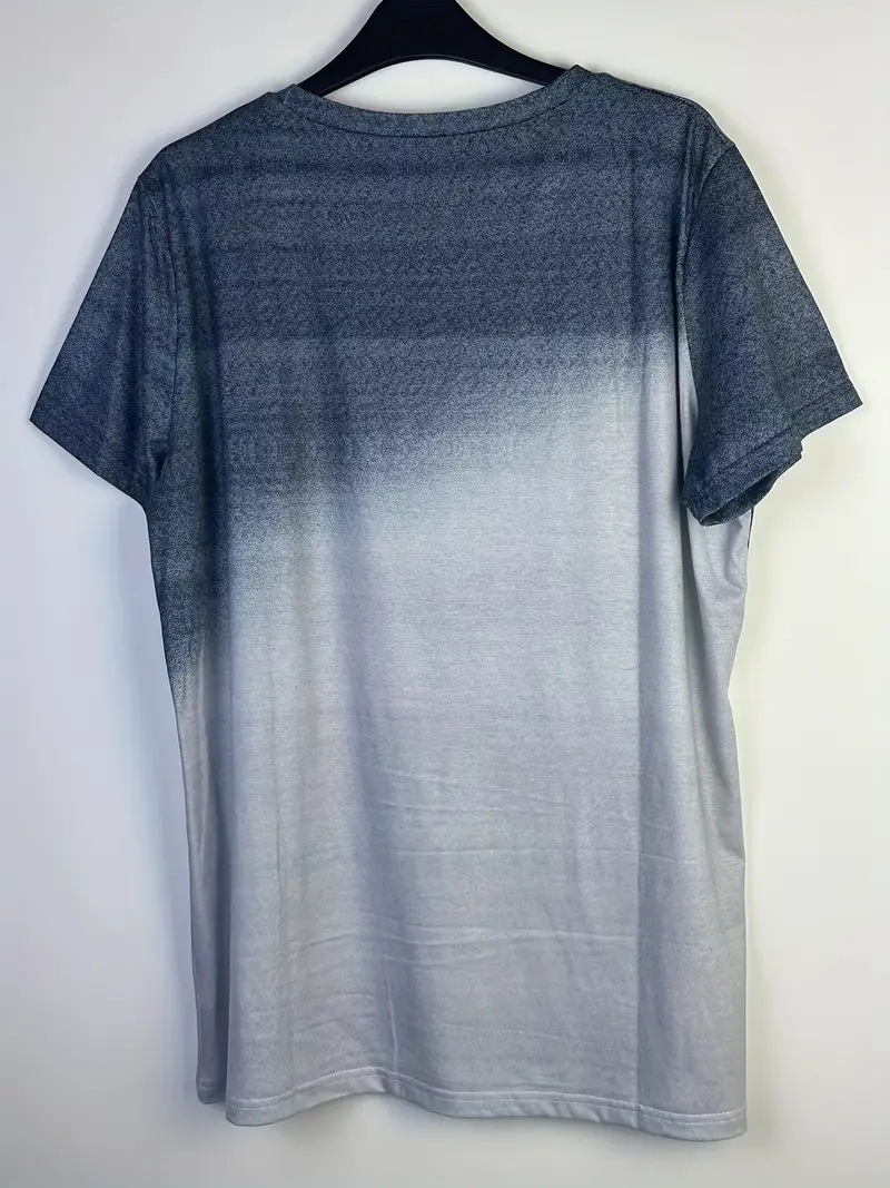 2024春夏アマゾンwish国境を越えた欧米の大きいサイズの女装ファッションプリントのグラデーション色の半袖tシャツの上着