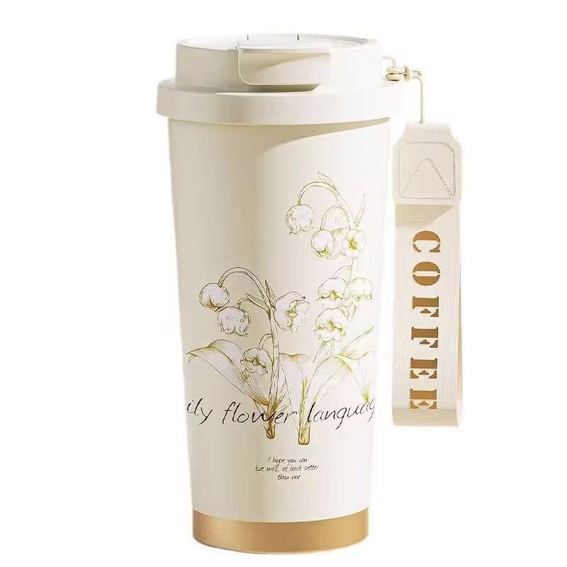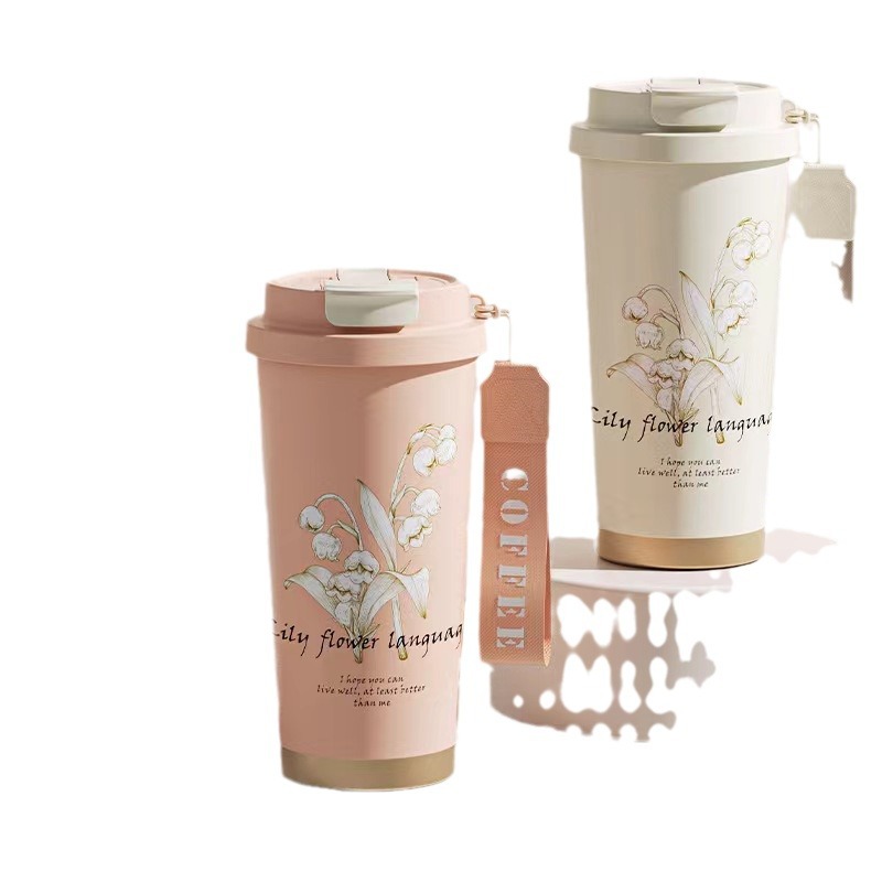 不锈钢高颜值咖啡杯车载新款铃兰花双饮保温杯简约水杯工厂批发