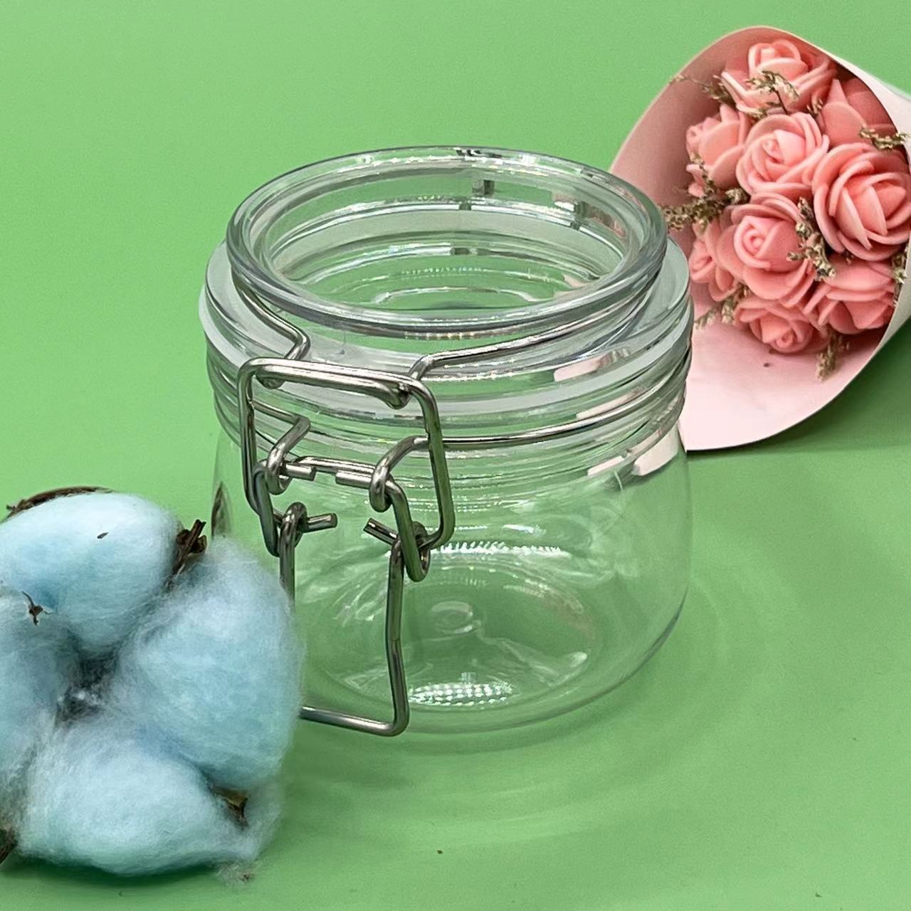 200mlの丸い透明プラスチック製の密封容器、蜂蜜、ギフト、食品グレードのナッツ、乾燥柑橘皮の包装容器、売れ筋商品