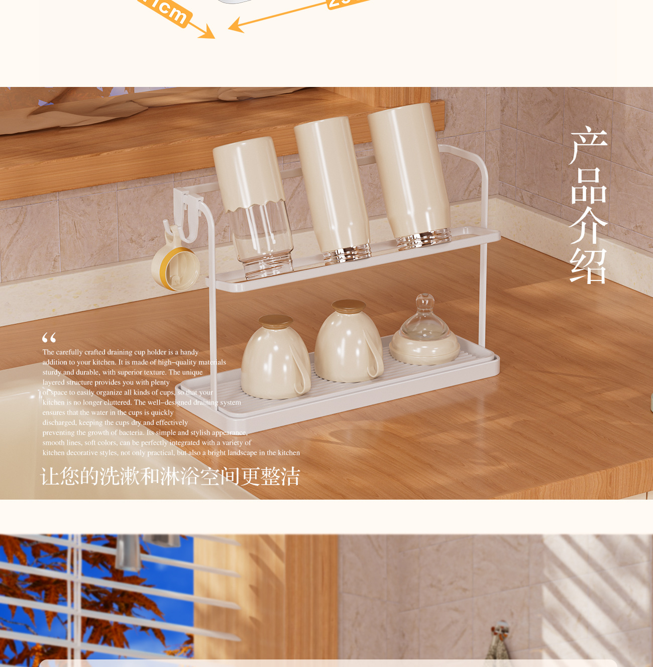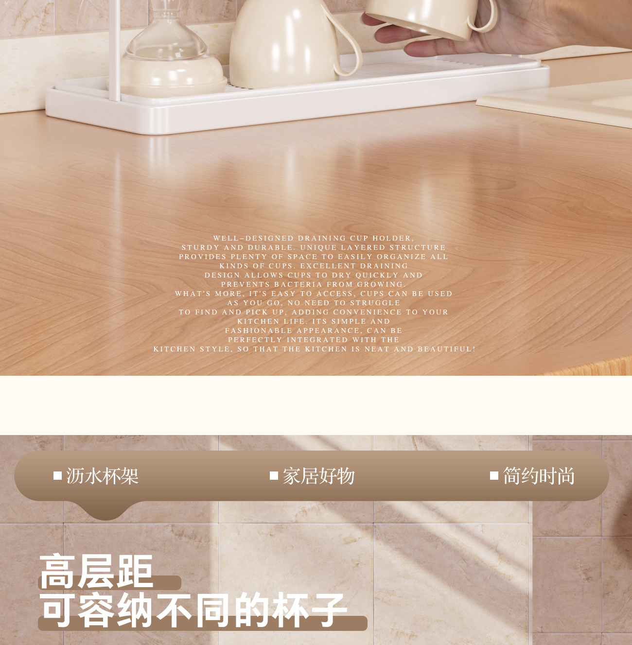 杯架双层沥水托盘架厨房餐桌台面杯子茶杯咖啡水杯吧台收纳置物架