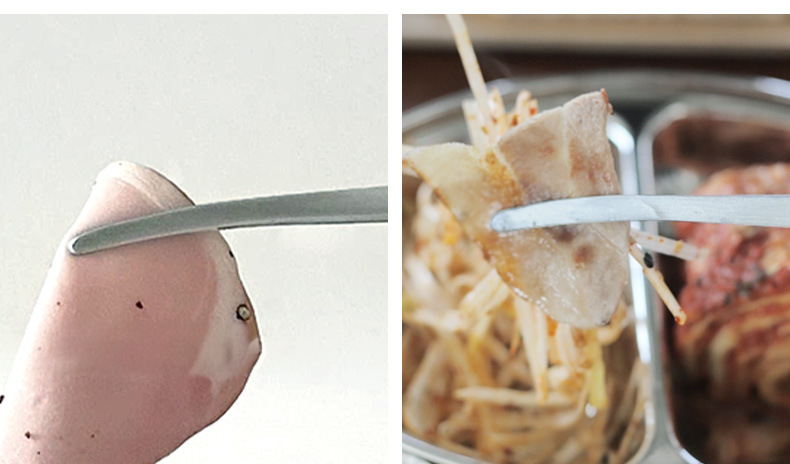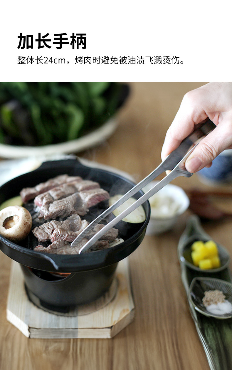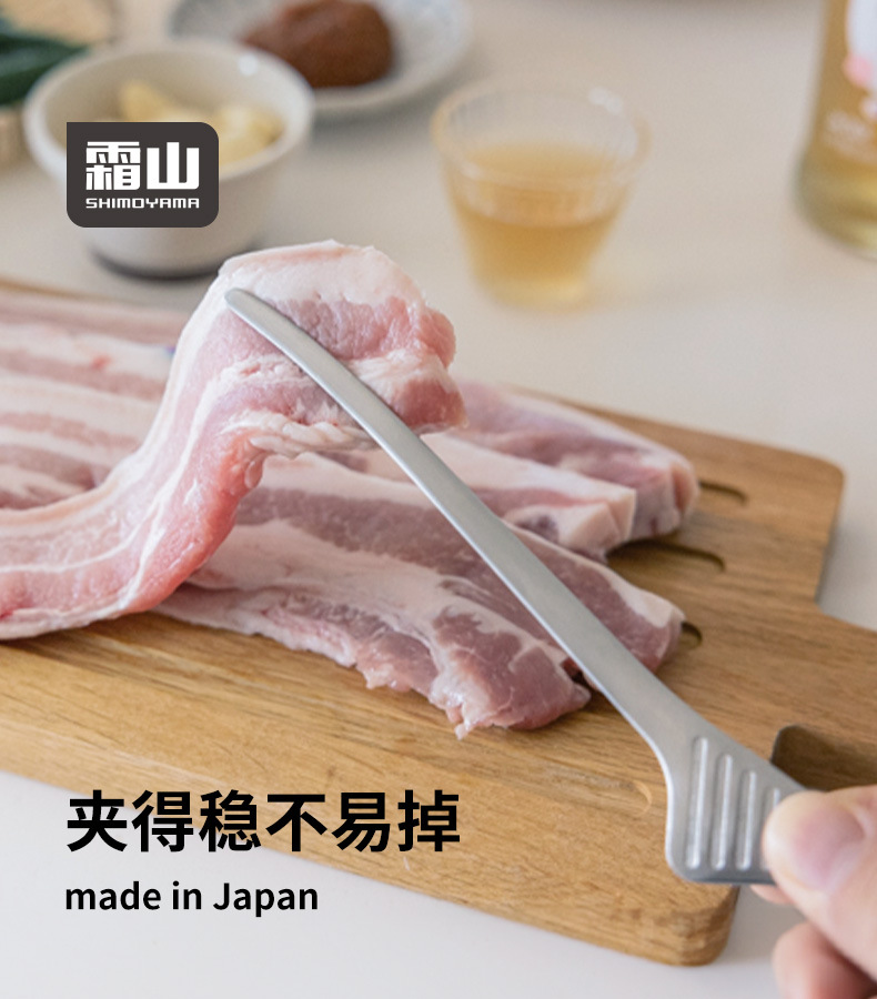 日本の霜の山のステンレスの焼肉は家庭用キャンプのバーベキューの食品を挟みます。