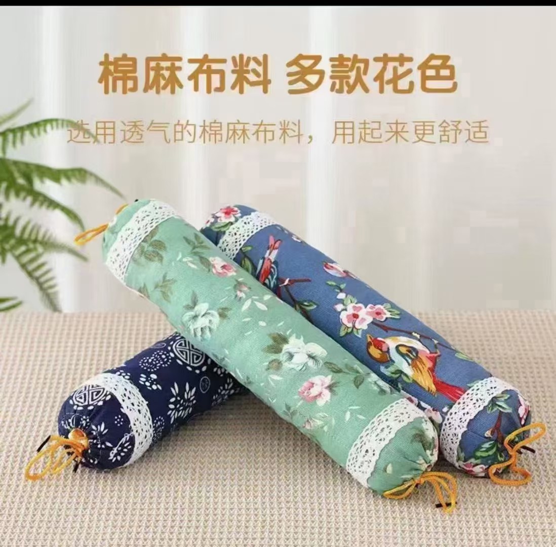 ギフトボックス入りヨモギ頚椎枕、首枕、円筒枕、古い粗布キャンディ枕、ヨモギ枕、丸枕メーカー卸売