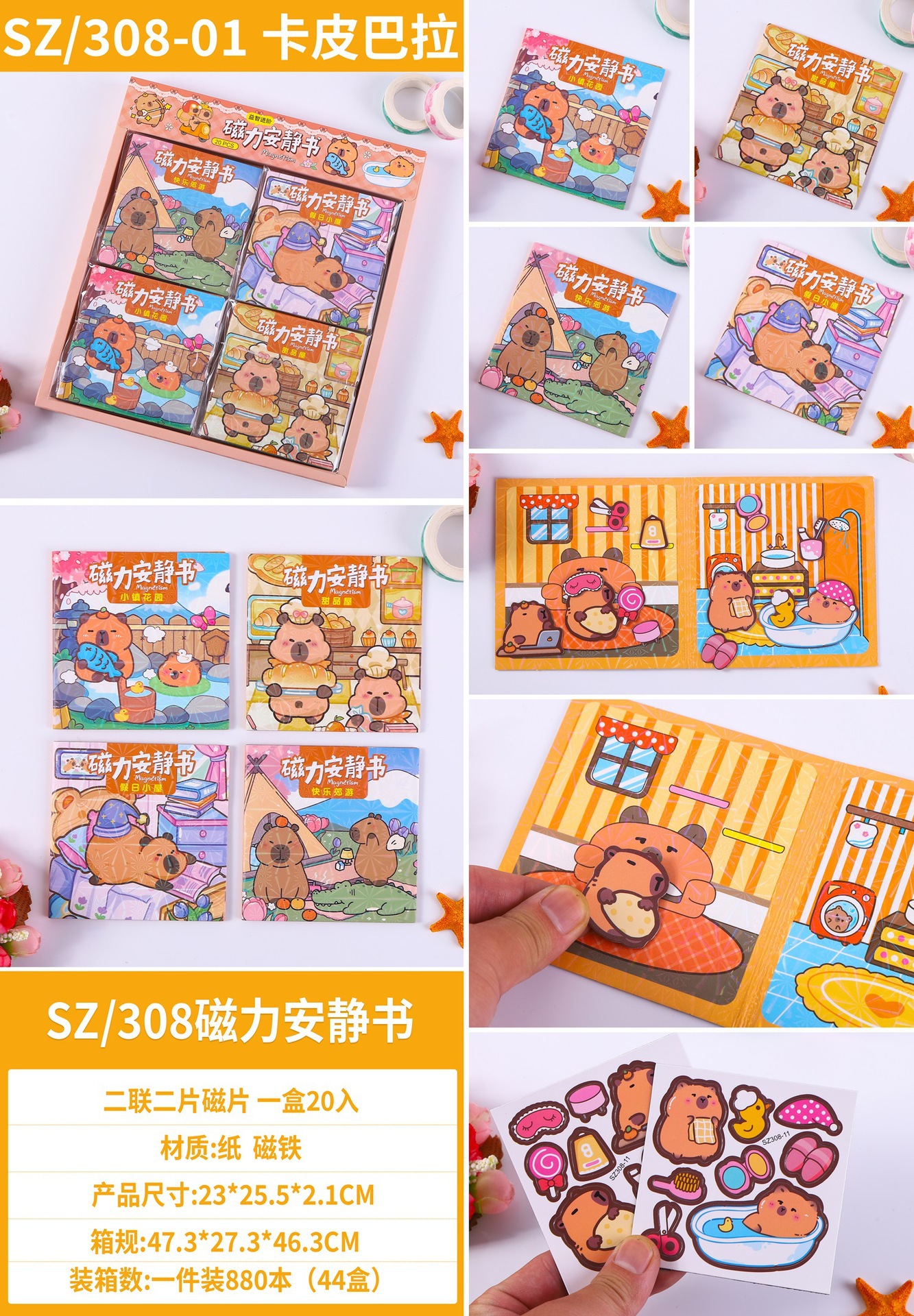 ミニカピバラ磁気静かな本卸売カットフリー子供の知育玩具磁気ステッカーブック静かな本