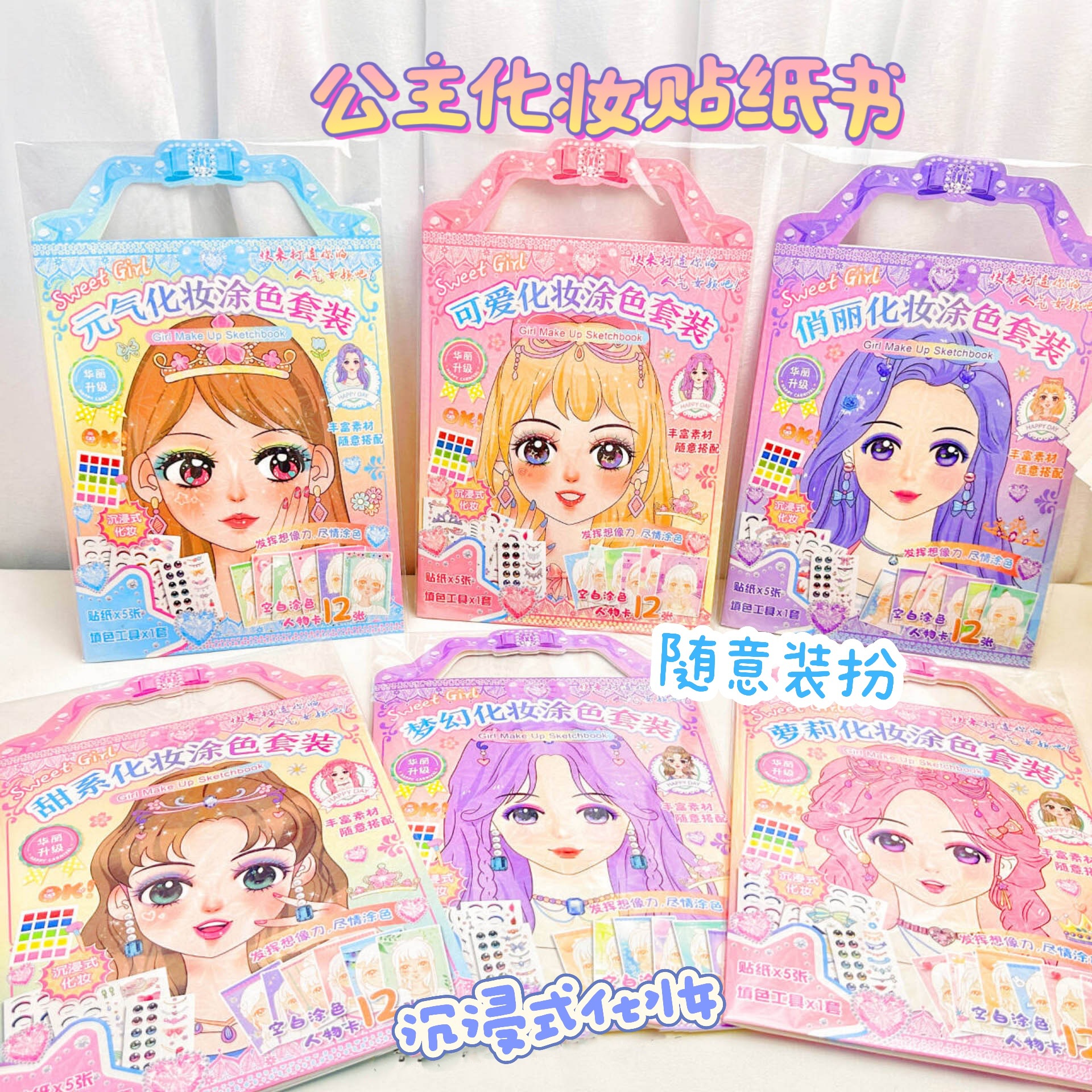 ポータブル diy メイクアップ着色セット美容ドレスアップ女の子のおもちゃステッカーブックギフトプリンセスメイクアップハンドバッグ