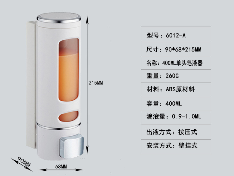 跨境货源 400毫升壁挂皂液盒皂液器单头手动按压式洗手液机酒店