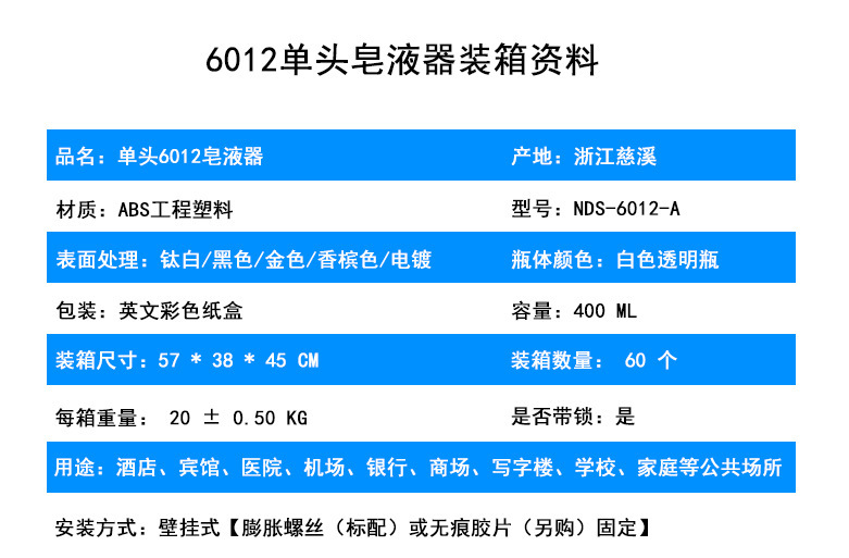 跨境 400ml单双三头皂液器按压壁挂酒店浴室沐浴液盒洗手液