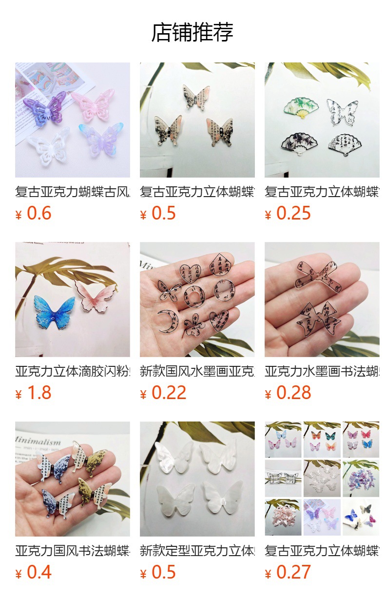 レトロアクリル立体蝶髪飾り手作り材料耳飾りイヤリングペンダントdiyアクセサリー卸売り