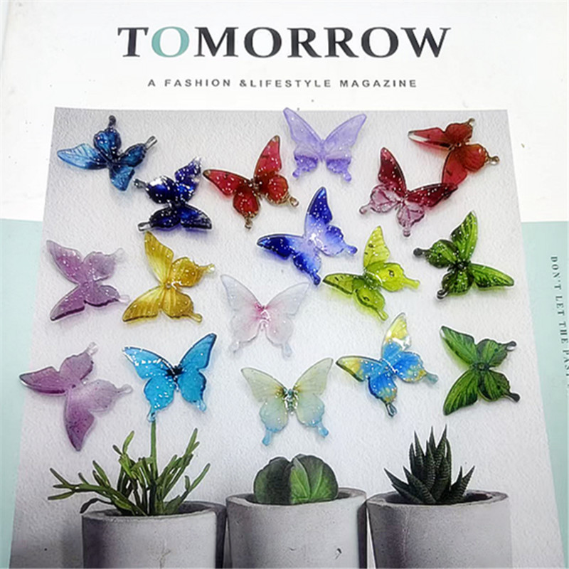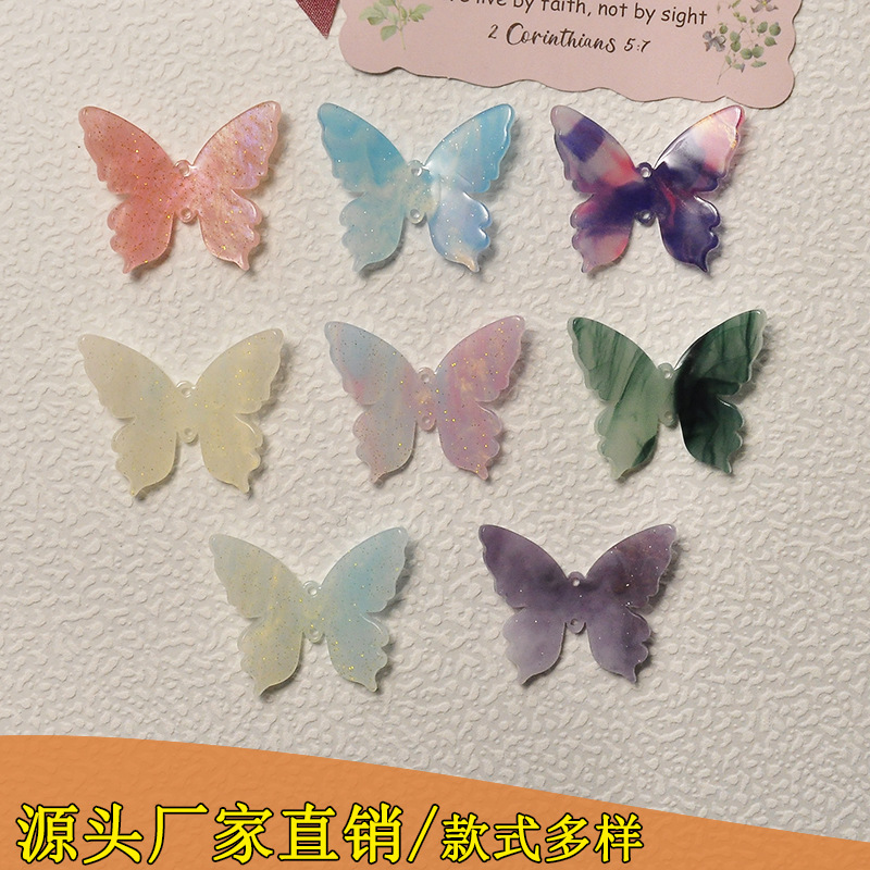 新款亚克力透明葱粉立体蝴蝶diy配饰古风发簪diy饰品配件吊坠批发