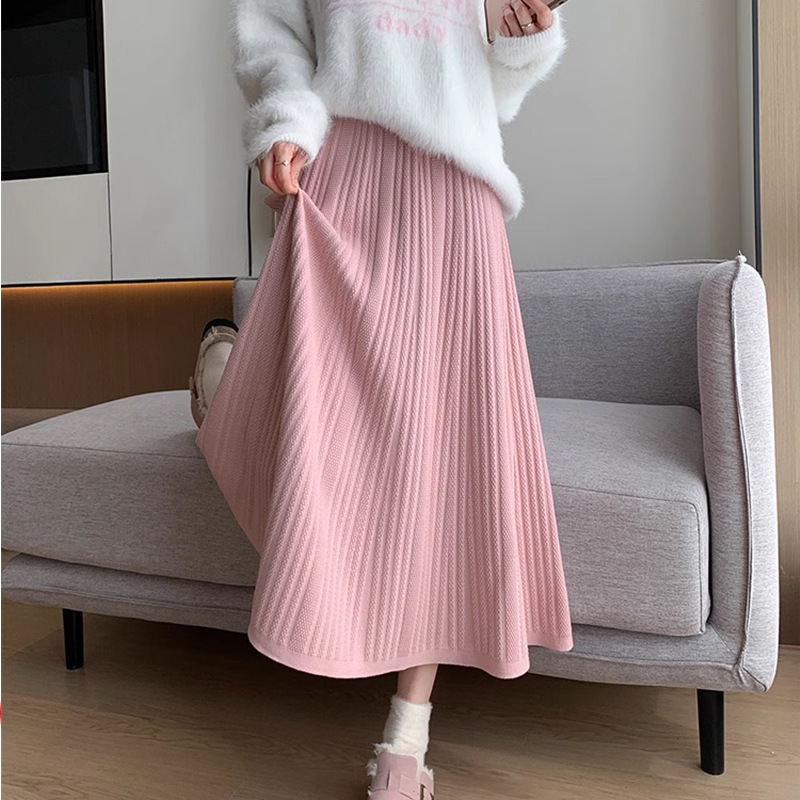 高級ニットのスカートは秋冬の半身のスカートの中で長いタイプのa字のスカートです。