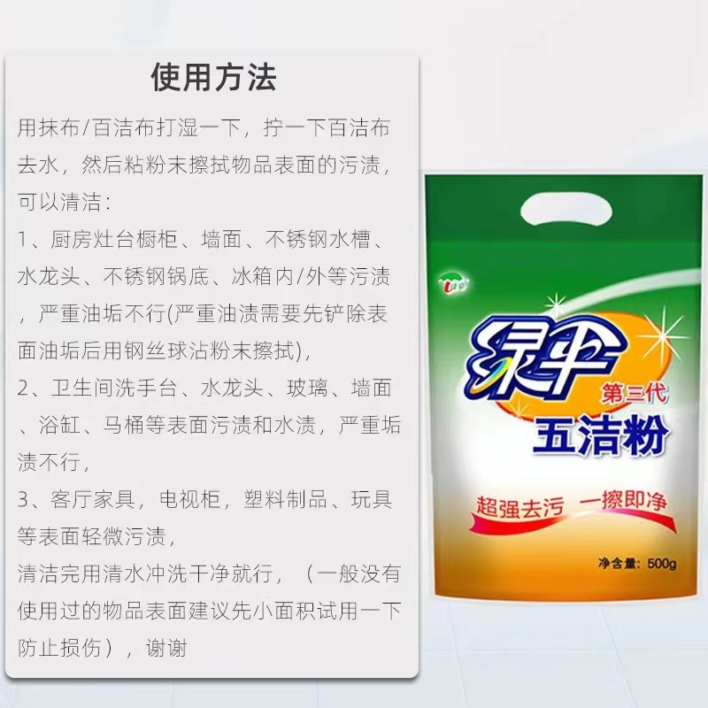緑傘五洁粉袋入り汚れ除去粉ステンレス洗剤水垢除去汚れ除去粉錆除去油汚れ500g/