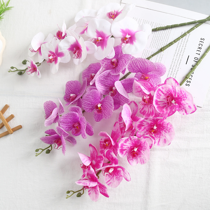メーカー卸売り3dプリントpu 9頭の手触り蝶蘭シミュレーション花絹花ウェディングホーム装飾撮影道具