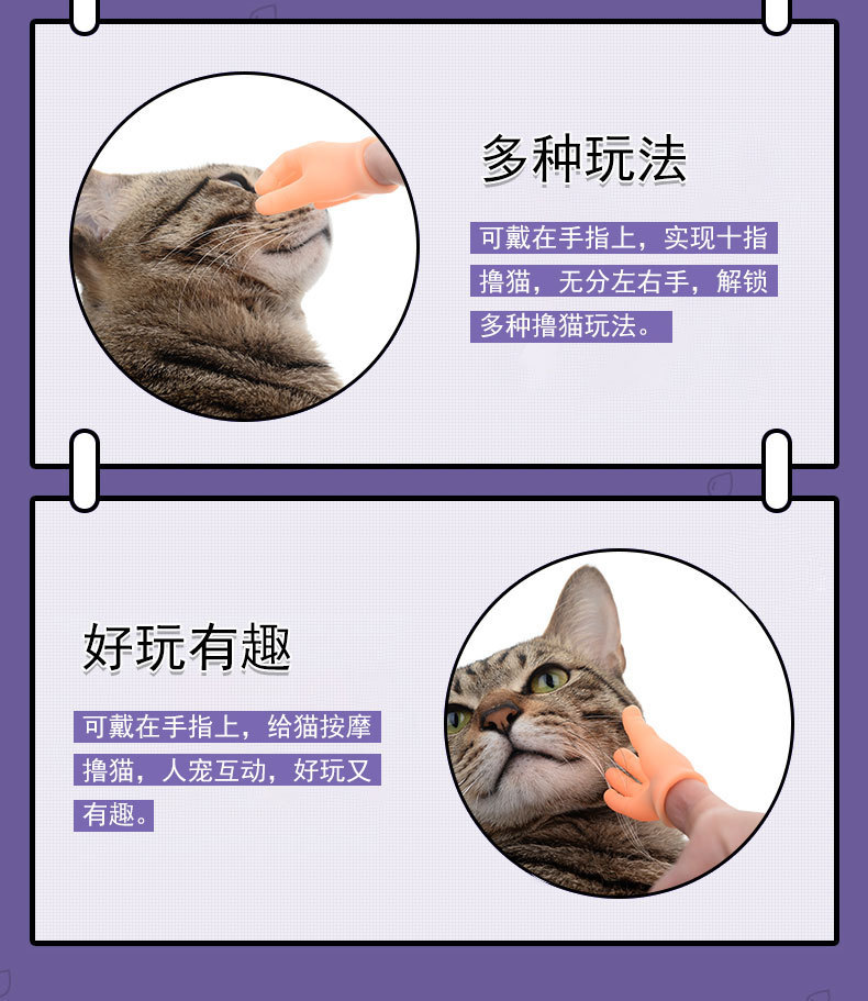 Douyin インターネット有名人の猫を楽しませる小さな指の手袋、猫を撫でるプラスチック手袋、左右の小さな手をマッサージします。