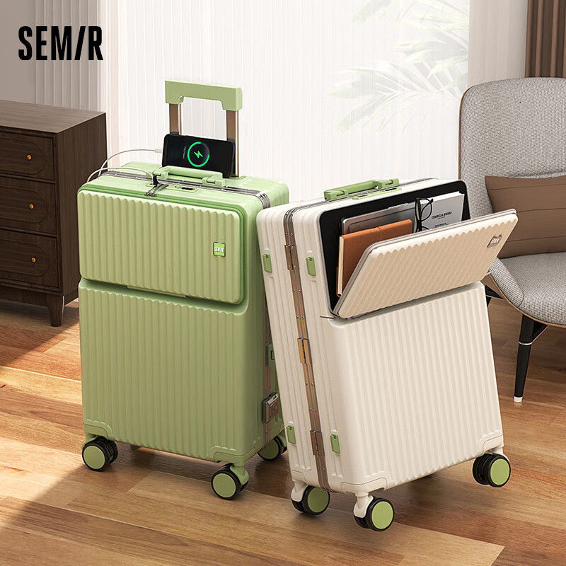 森马新款前开口带挂钩锁扣行李箱20寸铝框箱登机箱旅行箱可充电
