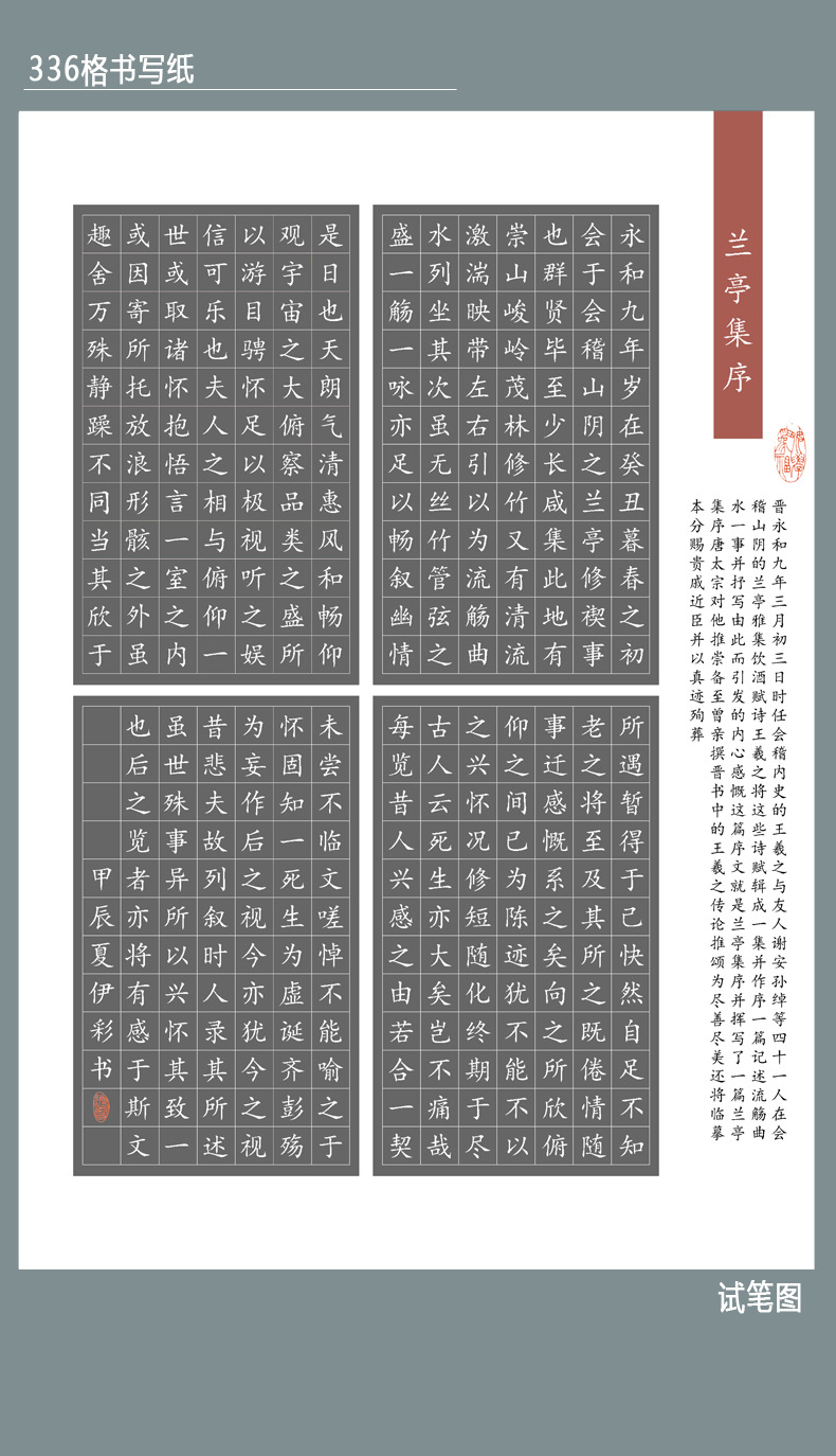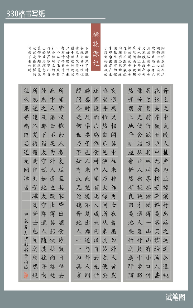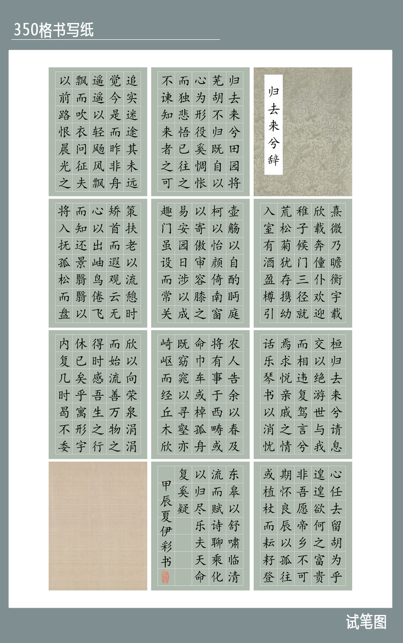 A3硬筆書道作品紙国展参加専用方眼灰底白字復古国風成人練習字が厚くなった