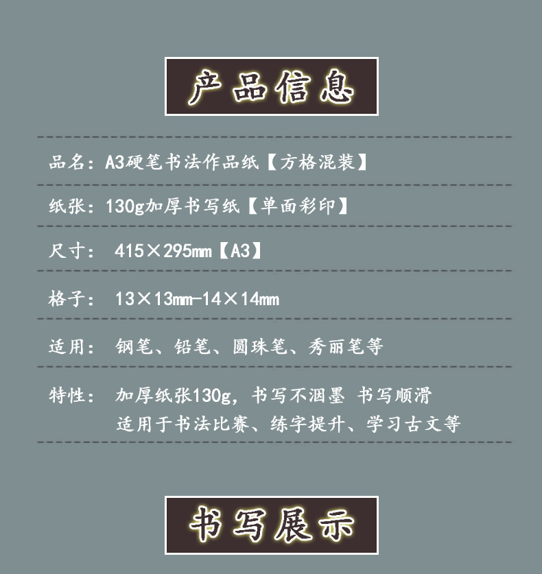 A3硬筆書道試合専用作品紙試合1.3方眼ペン練習字国展創作国風復古