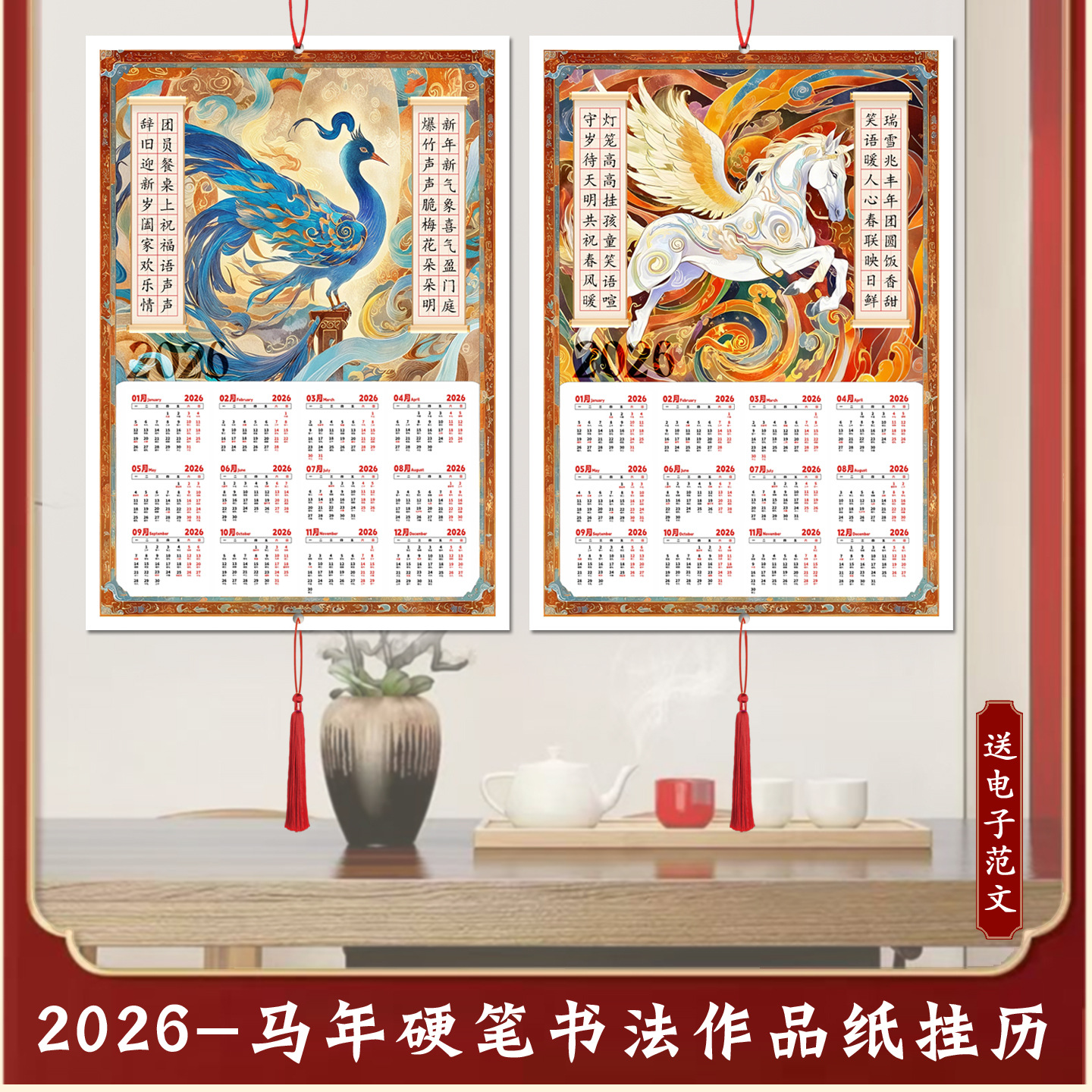 2026年马年挂历硬笔书法作品纸学生田字格40格加厚日历挂画书写纸